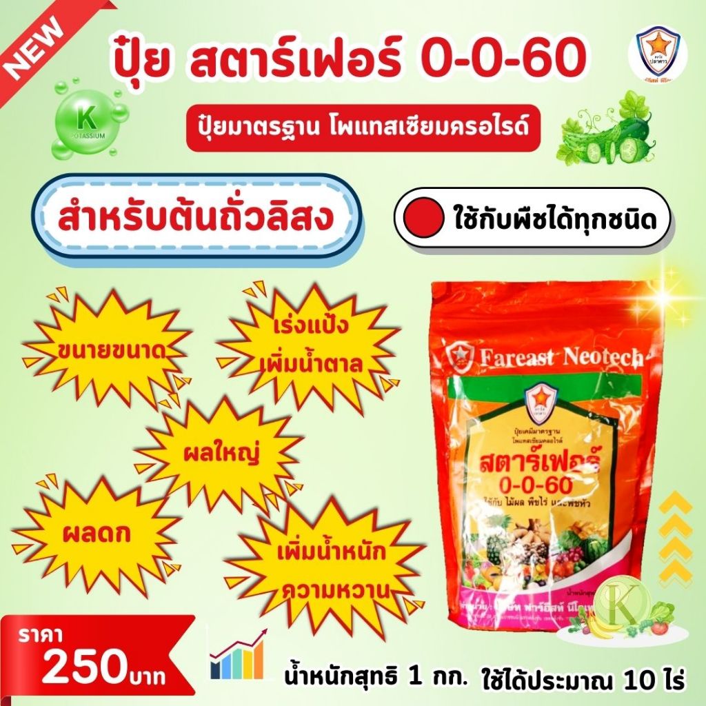 แตงกวา ผลดก ขยายขนาด เพิ่มน้ำหนัก เพิ่มคุณภาพ ผลผลิต ด้วย ปุ๋ยโพแทสเซี่ยมคลอไรด์ สตาร์เฟอร์ 0-0-60