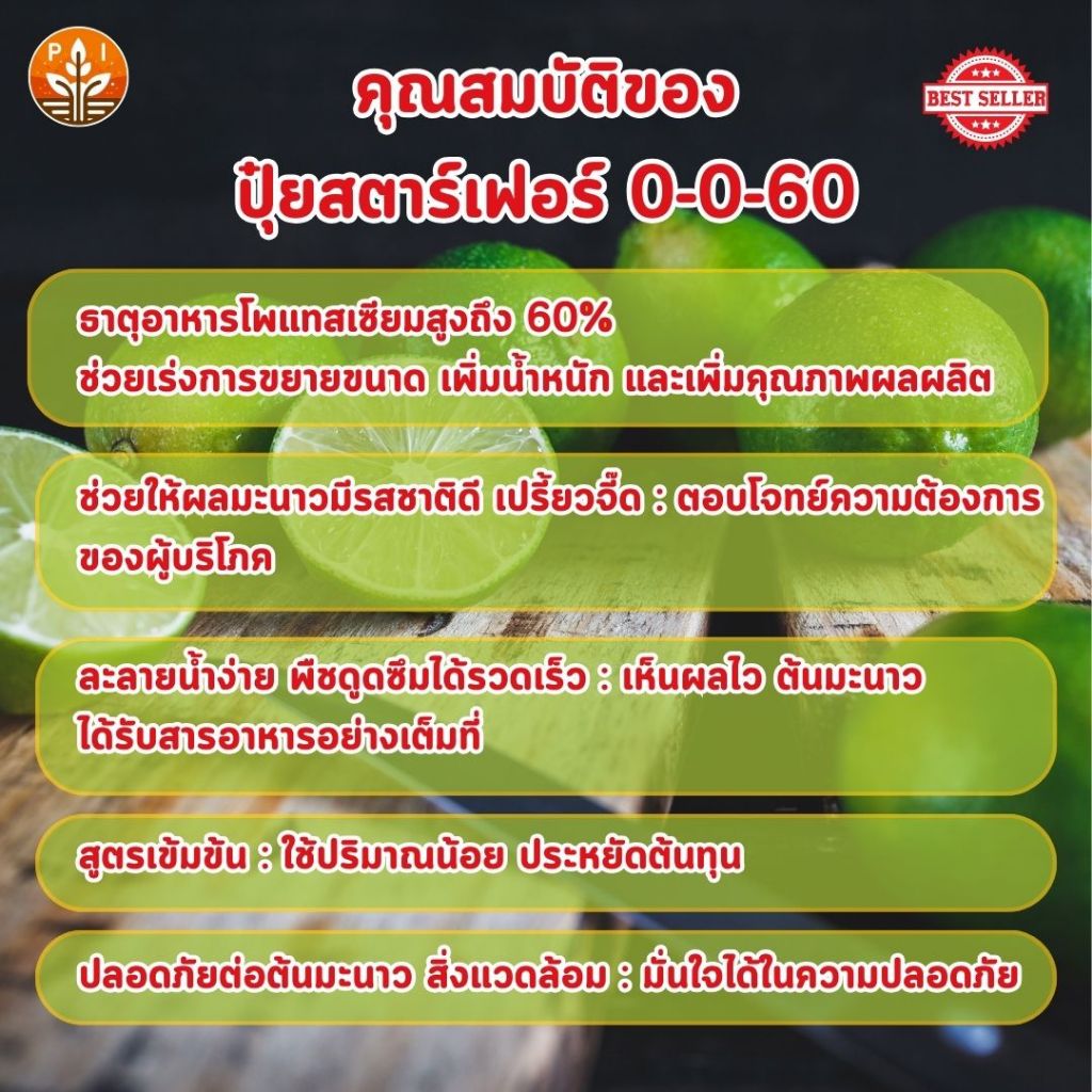 เร่งผลใหญ่ ผลดก เพิ่มน้ำหนัก และ เพิ่มคุณภาพสำหรับต้นมะนาว ด้วย ปุ๋ยสตาร์เฟอร์ 0-0-60 ปุ๋ยมาตรฐาน โพแทสเซี่ยมคลอไรด์