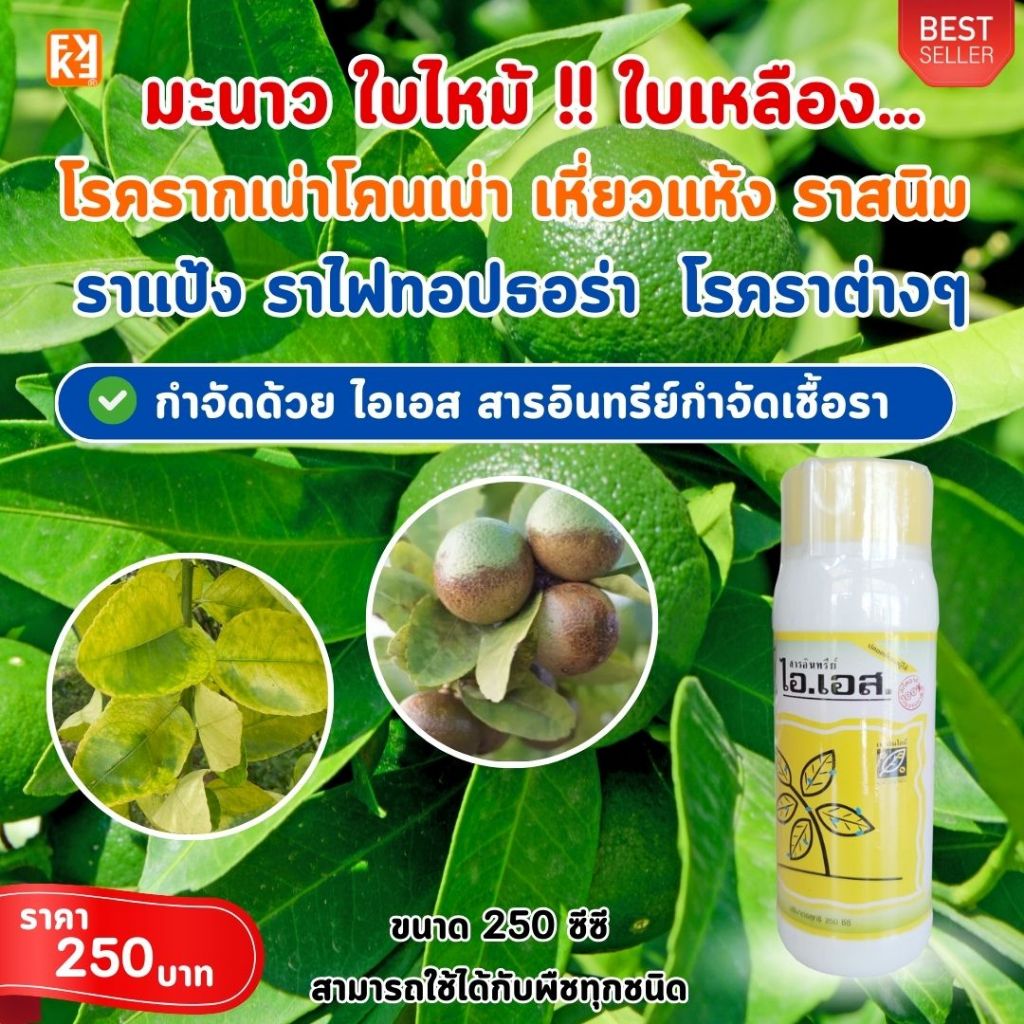 มะนาว ใบไหม้ รากเน่าโคนเน่า ราสนิม ราแป้ง ไฟทอปธอร่า เหี่ยวแห้ง โรคราต่างๆ กำจัดด้วย ไอเอส และเร่งฟื้นฟู ด้วยปุ๋ย FK-T
