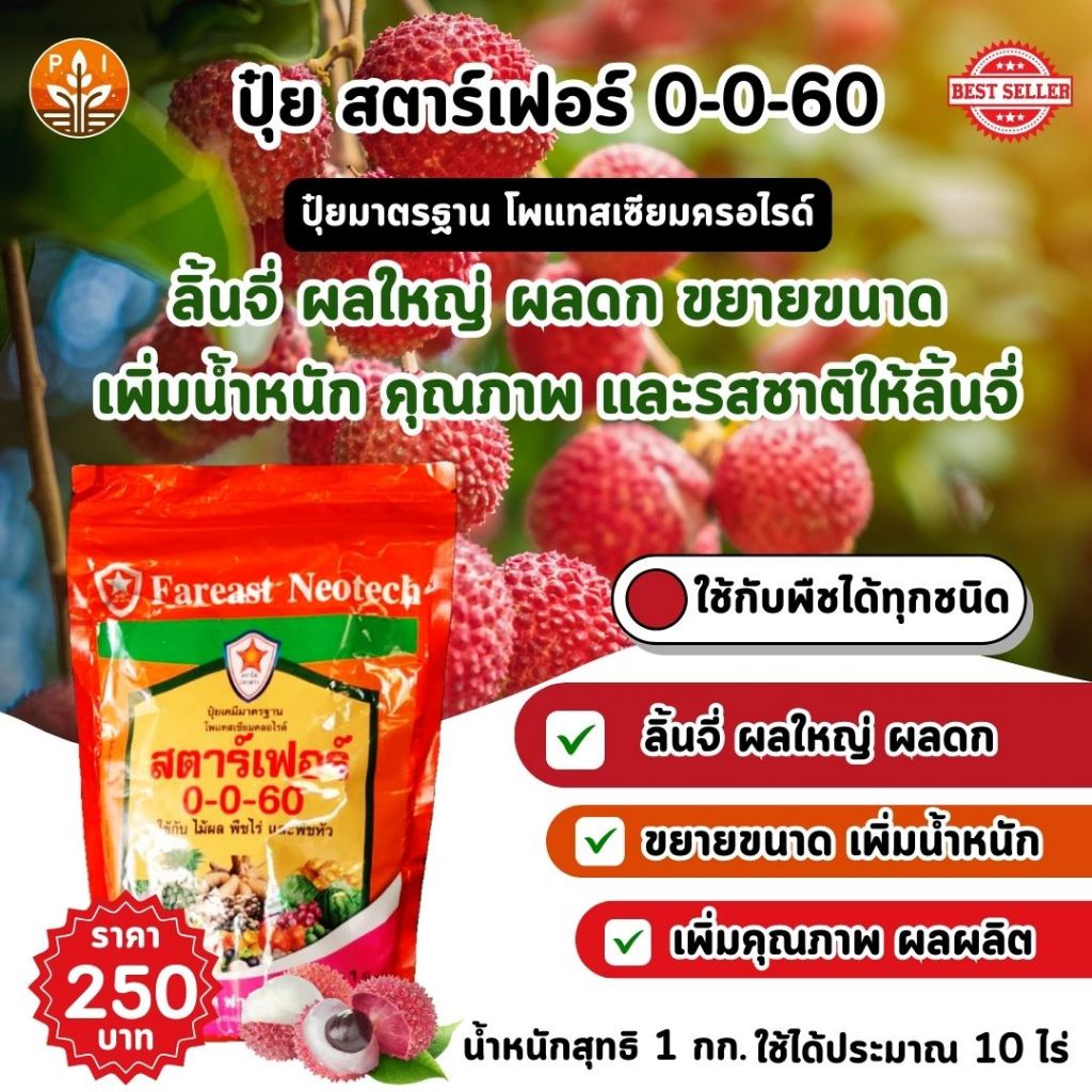ลิ้นจี่ผลใหญ่ ผลดก คุณภาพดี ด้วย ปุ๋ยสตาร์เฟอร์ 0-0-60 : ตัวช่วยสำคัญสำหรับเกษตรผู้ปลูกลิ้นจี่