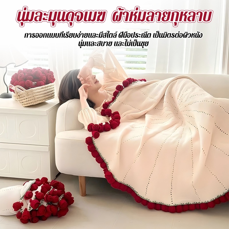 💐ของขวัญ💐ผ้าห่มช่อกุหลาบ นุ่มและสบาย ผ้าคลุมไหล่ ขนาด 60/100/150 ซม.มีถุงของขวัญให้ด้วย ใช้ได้กับโซฟา/เตียง/กลางแจ้ง