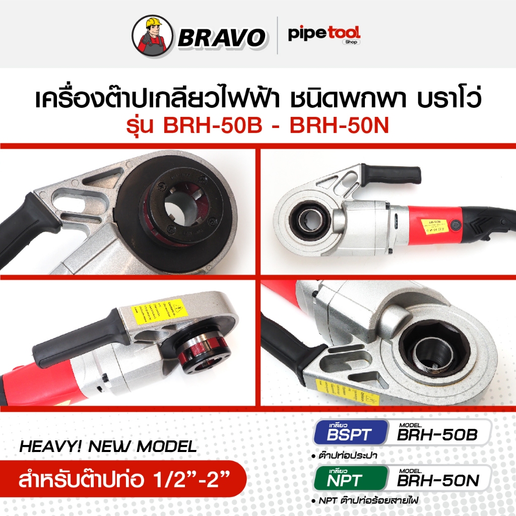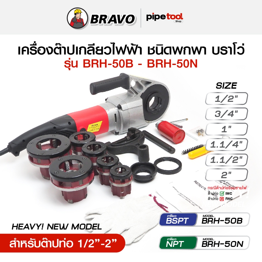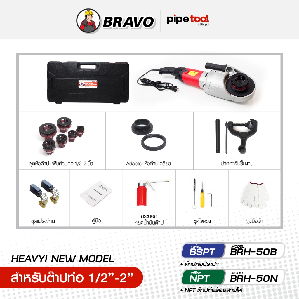 รุ่นใหม่! เครื่องต๊าปเกลียวมือไฟฟ้า ชนิดพกพาอุปกรณ์ครบ ต๊าปท่อ 1/2-2 นิ้ว เกลียว BSPT-NPT ยี่ห้อ BRAVO บราโว่