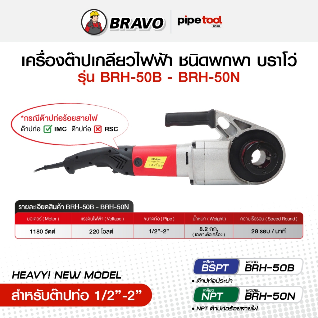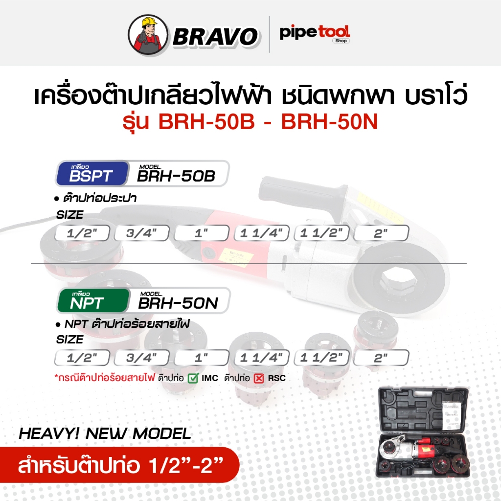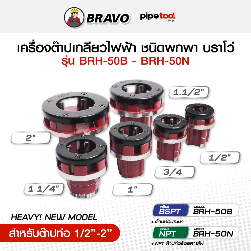 รุ่นใหม่! เครื่องต๊าปเกลียวมือไฟฟ้า ชนิดพกพาอุปกรณ์ครบ ต๊าปท่อ 1/2-2 นิ้ว เกลียว BSPT-NPT ยี่ห้อ BRAVO บราโว่