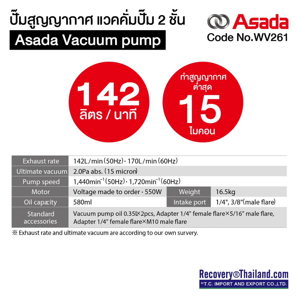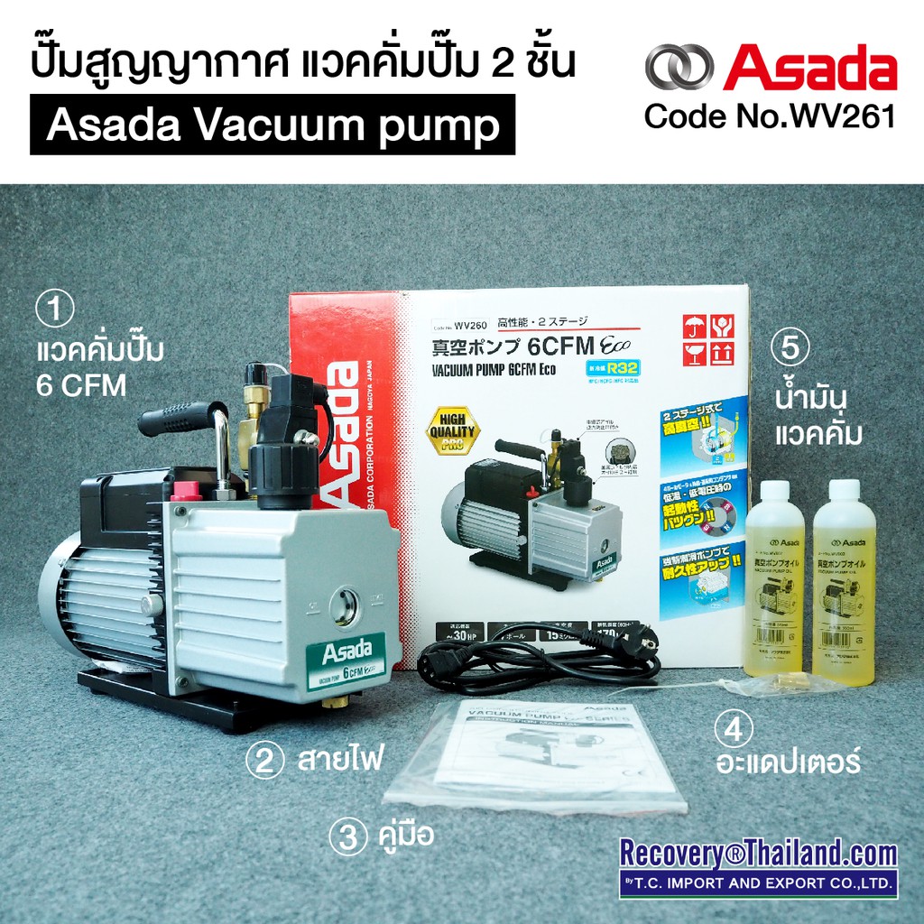ปั๊มสูญญากาศ แวคคั่มปั๊ม 2 ชั้น Asada Vacuum pump 6 CFM 142 ลิตร/นาที
