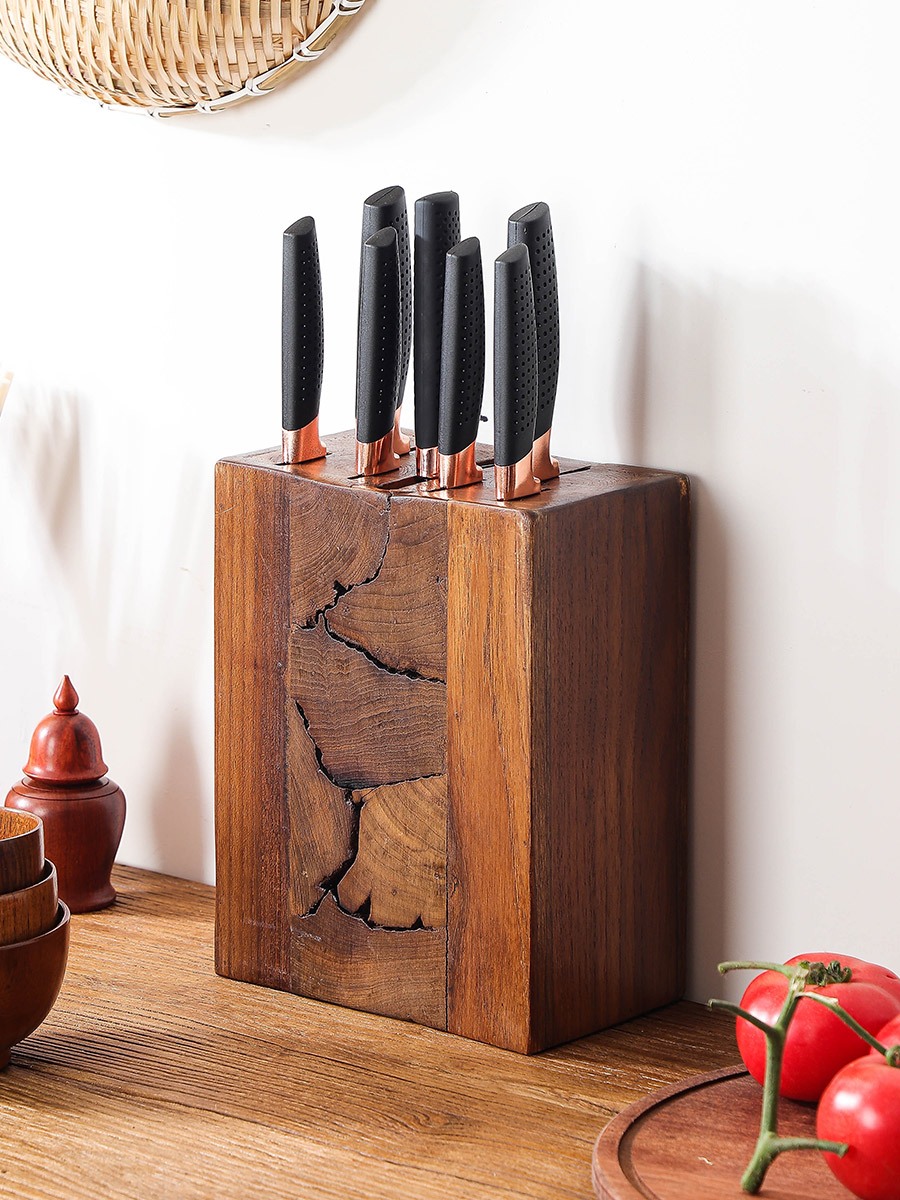 ที่เสียบมีดแกะสลักไม้เนื้อแข็ง กล่องเสียบมีด อุปกรณ์ทำครัว ที่เก็บของในครัว ของใช้ในครัว ที่เก็บมีดทำครัว ที่ใส่มีด