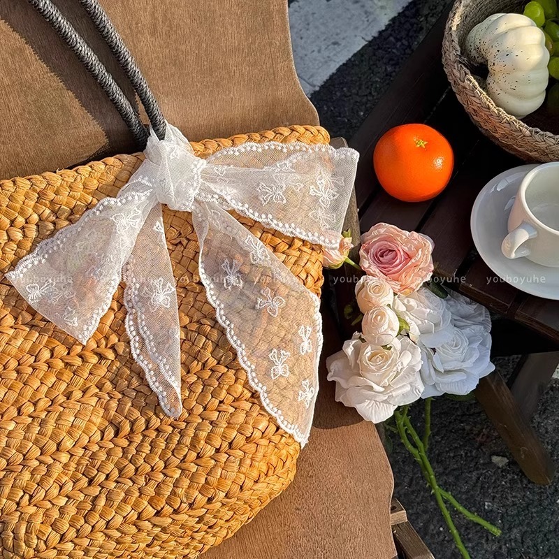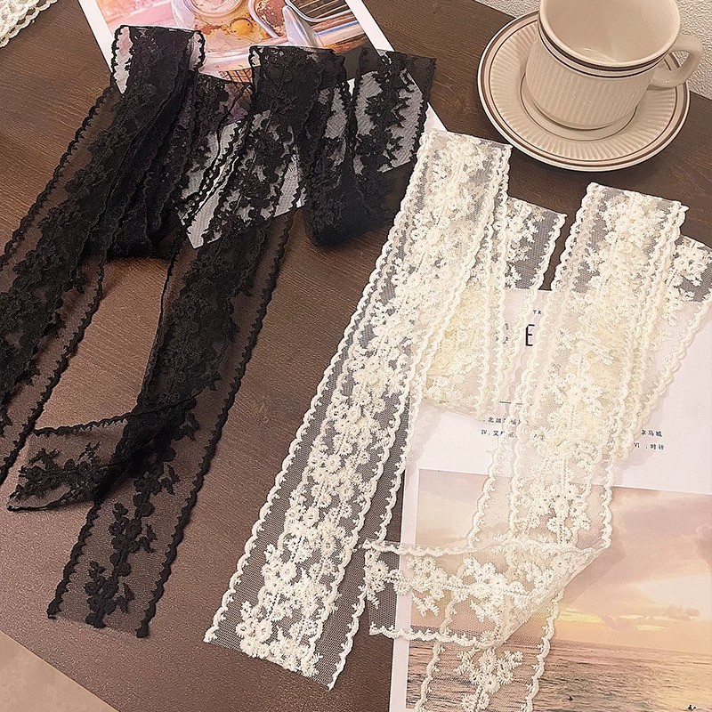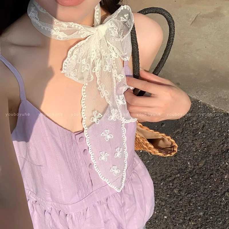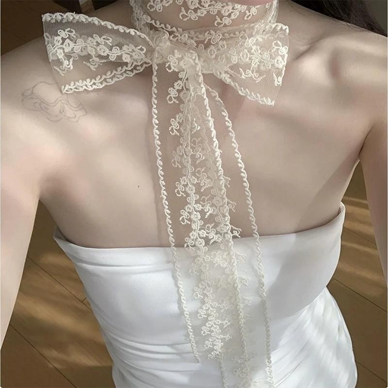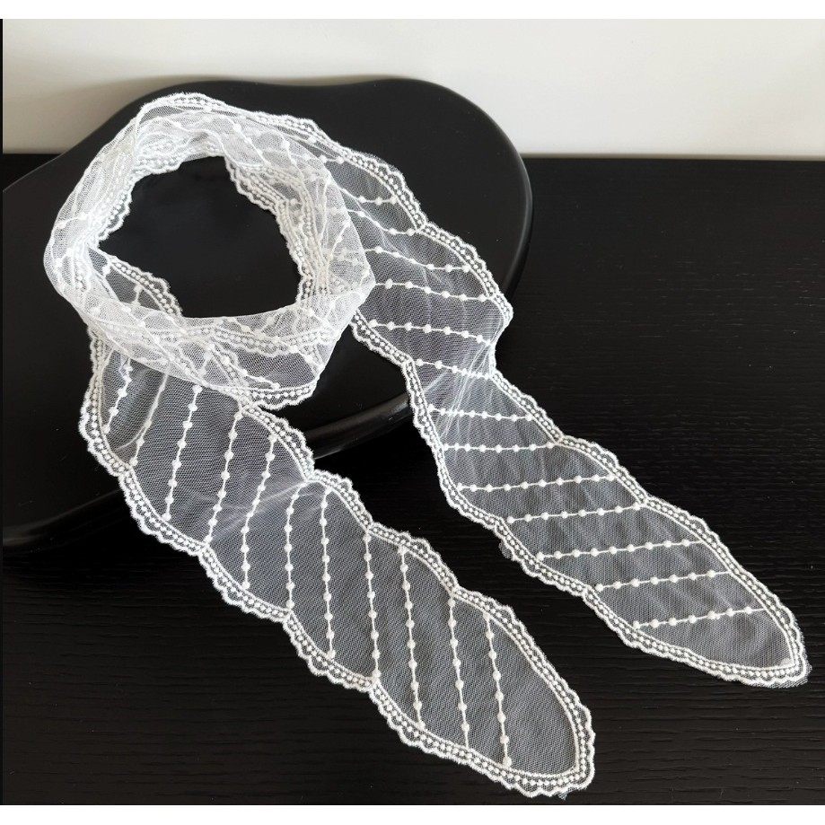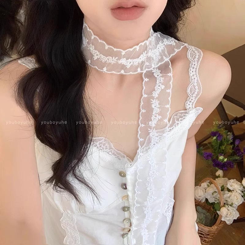 ลูกไม้สีขาวลําแสงผ้าพันคอผ้าไหมหญิง ins ฤดูใบไม้ผลิฤดูร้อนลูกไม้อุปกรณ์เสริมผม choker อุปกรณ์เสริม Tie Hair Headdress