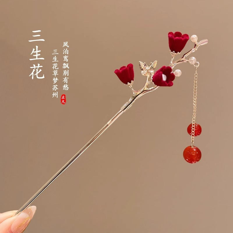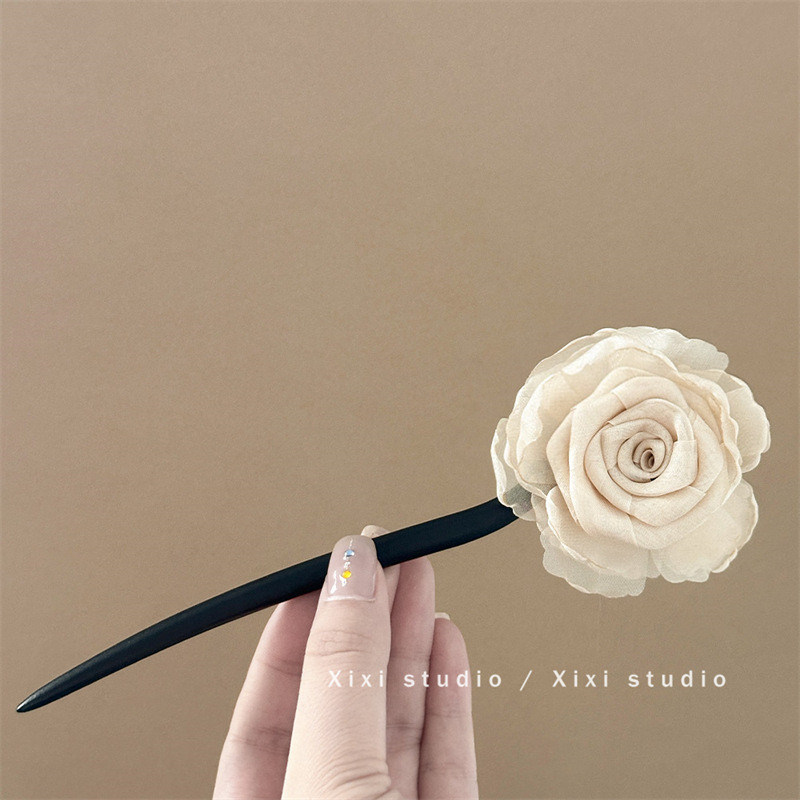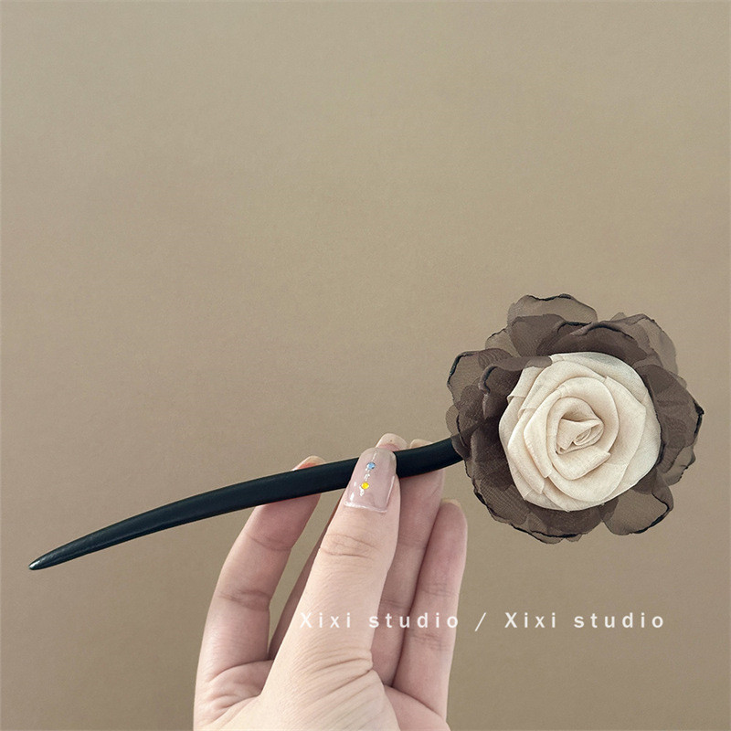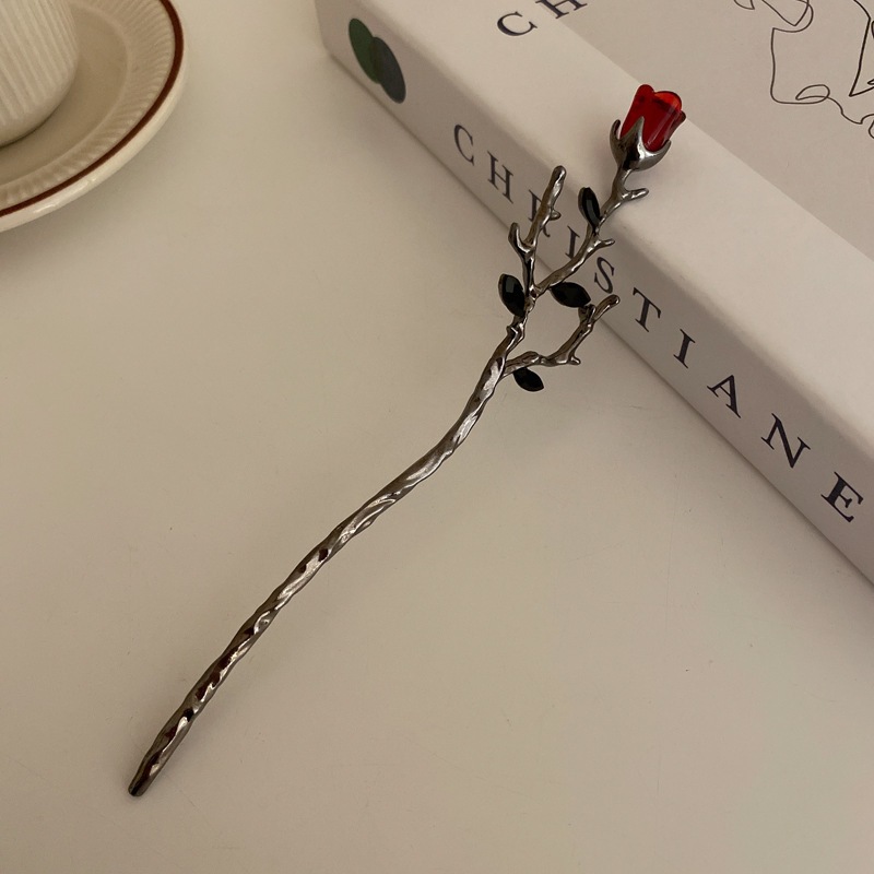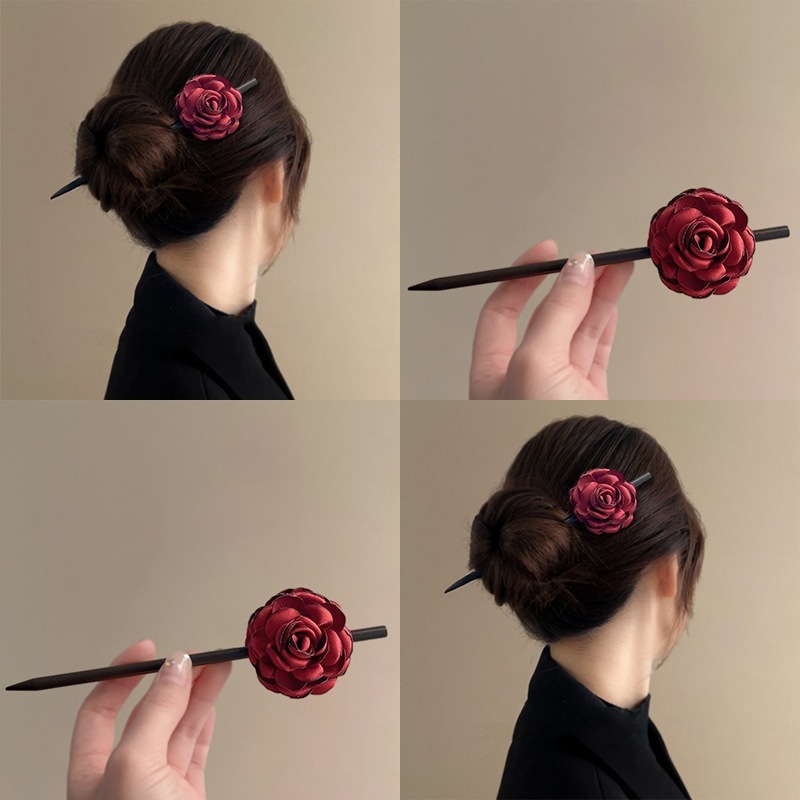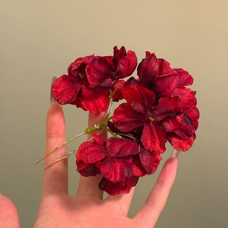 พู่กิ๊บและผ้าโพกศีรษะสไตล์ใหม่สำหรับผู้หญิง ตกแต่งด้วยกุหลาบสีแดง