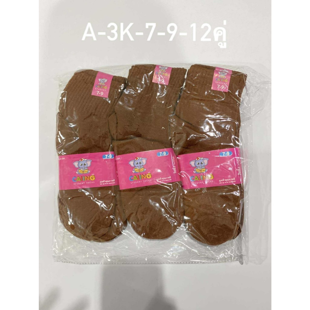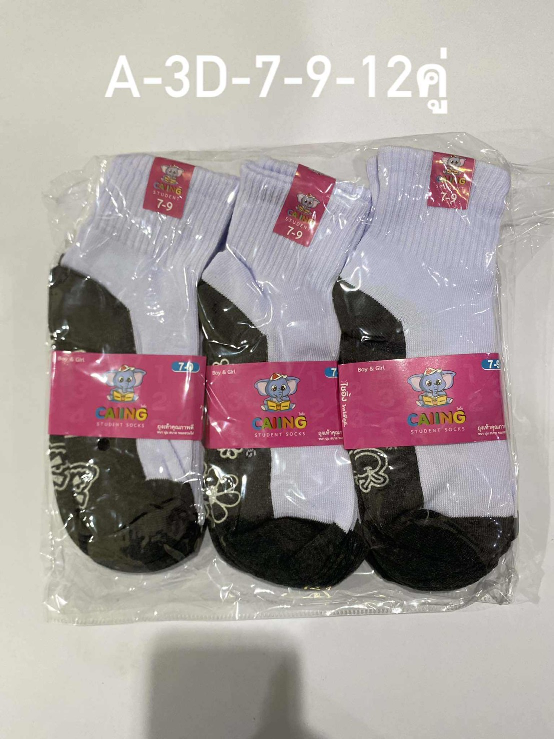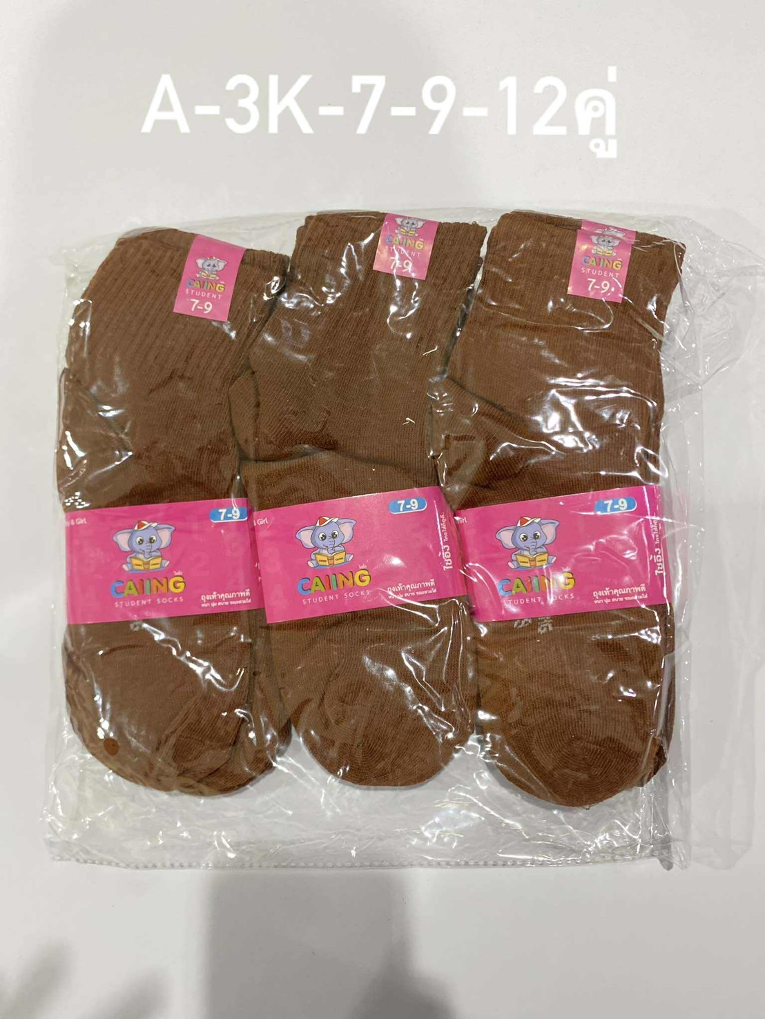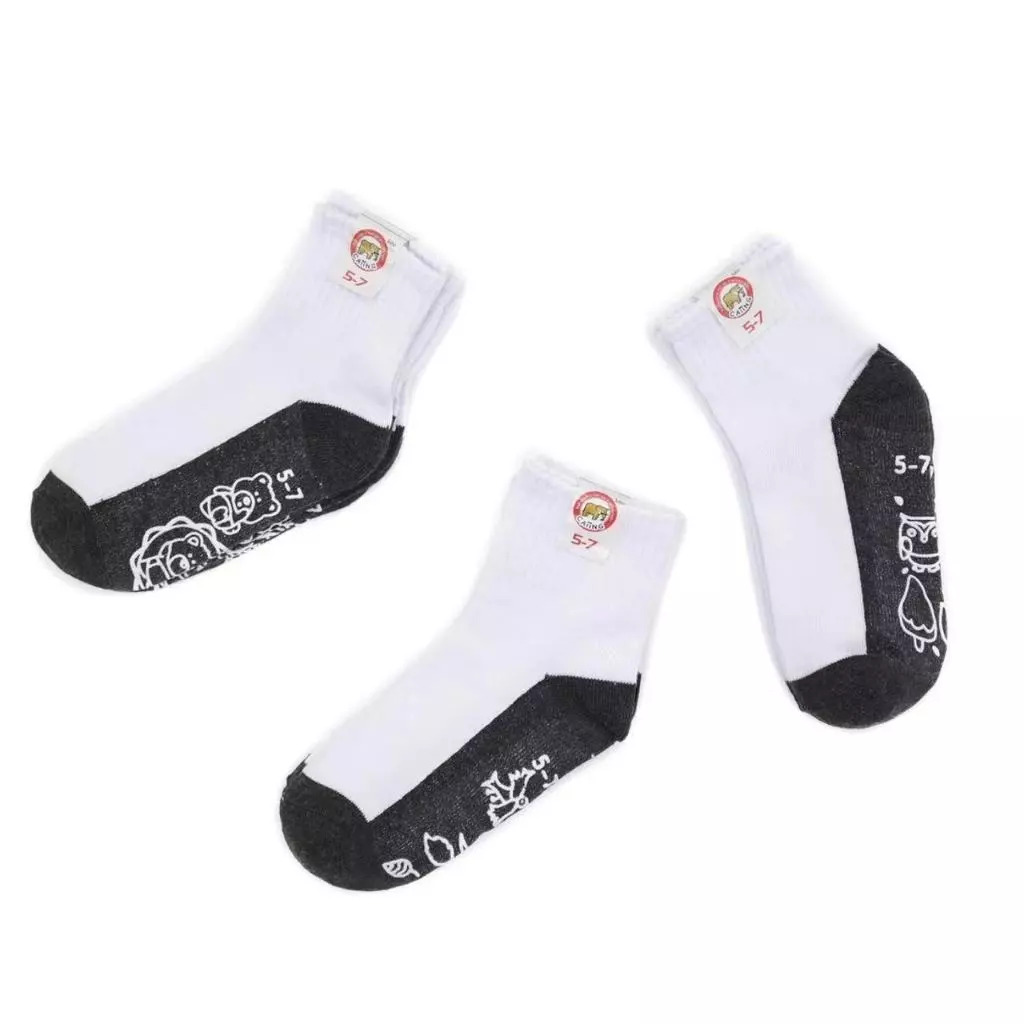 [แพ็ค 12 คู่] ถุงเท้านักเรียน กันลื่น สีขาวพื้นเทา / น้ำตาล ขนาด 5-7 / 7-9/ 9-12 ฟรีไซส์ มีให้เลือกหลายแบบ