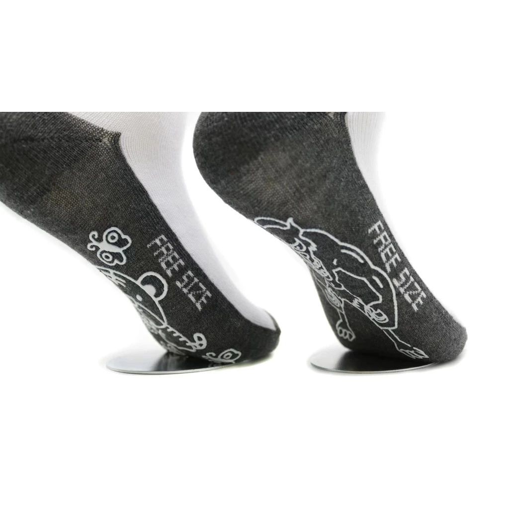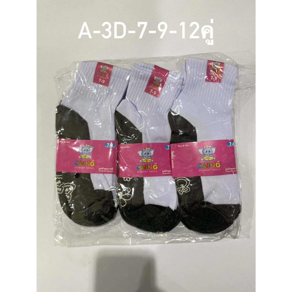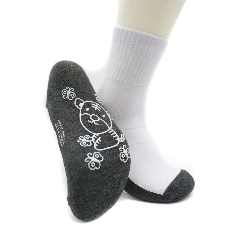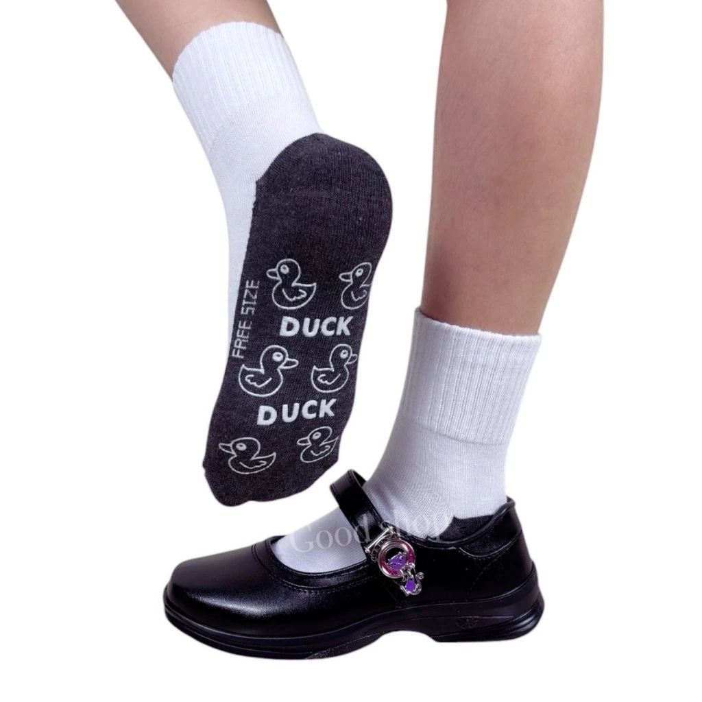 [แพ็ค 12 คู่] ถุงเท้านักเรียน กันลื่น สีขาวพื้นเทา / น้ำตาล ขนาด 5-7 / 7-9/ 9-12 ฟรีไซส์ มีให้เลือกหลายแบบ