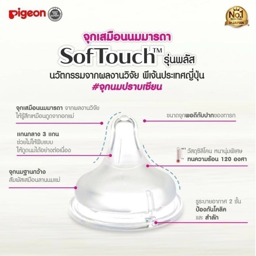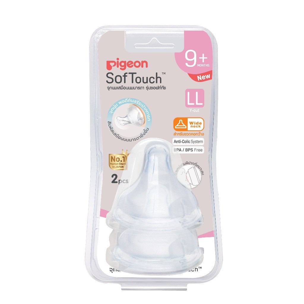 Pigeon จุกนมเสมือนนมมารดา รุ่นซอฟท์ทัช ไซส์ 2L คอกว้าง (แพ็ค 2 ชิ้น)