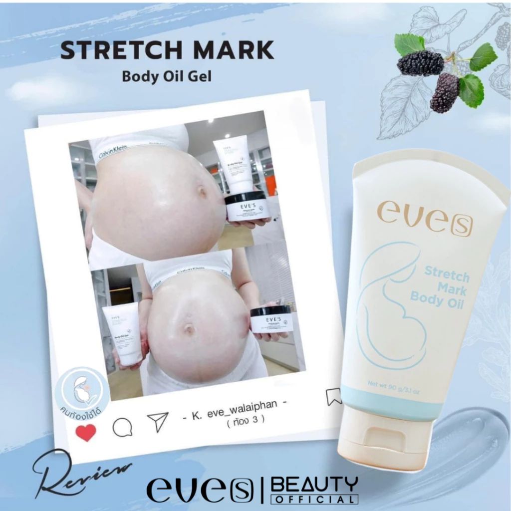 EVE’S Stretch Mark Body Oil Gel อีฟส์ ออยล์ สเทรชมาร์ค บอดี้ออยล์เจล เหมาะสำหรับคุณแม่ คนท้อง ผิวแตกลาย ขนาด 90 กรัม