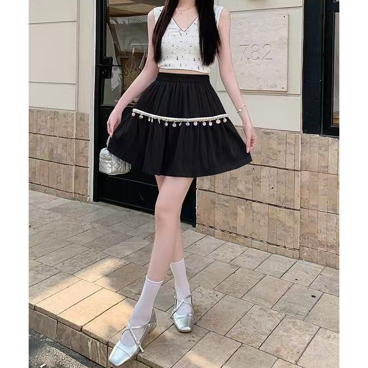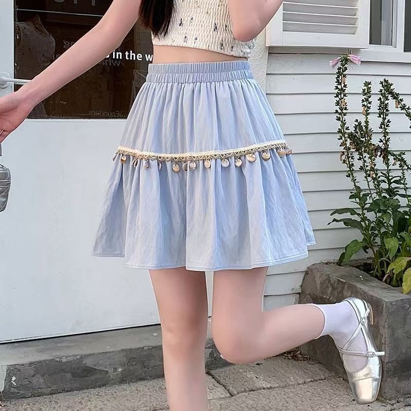 กระโปรงพู่เปลือกหอยเลียนแบบสไตล์แห่งชาติโบฮีเมียนสําหรับผู้หญิงในช่วงฤดูร้อนกระโปรงทรงเอทรงสลิมเอวสูงแบบใหม่