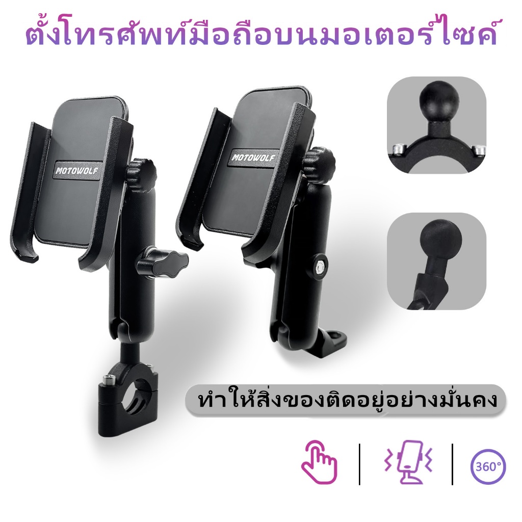 【ของแท้100%】MOTOWOLF MDL 2821 ที่จับมือถือมอเตอร์ไซค์ ที่จับโทรศัพท์มอเตอร์ไซค์ ที่วางมือถือมอไซค์ PHONE HOLDER