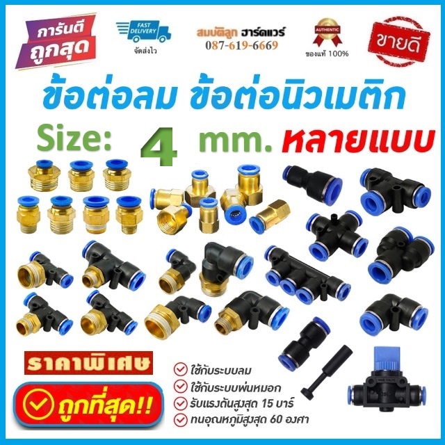ข้อต่อลม ข้อต่อสายลม [ขนาด : 4 mm] ฟิตติ้งลม ข้อต่อนิวเมติก เสียบสายลม ข้อต่อหัวพ่นหมอก หัวพ่นหมอก By สมบัติลูกฮาร์ดแวร์