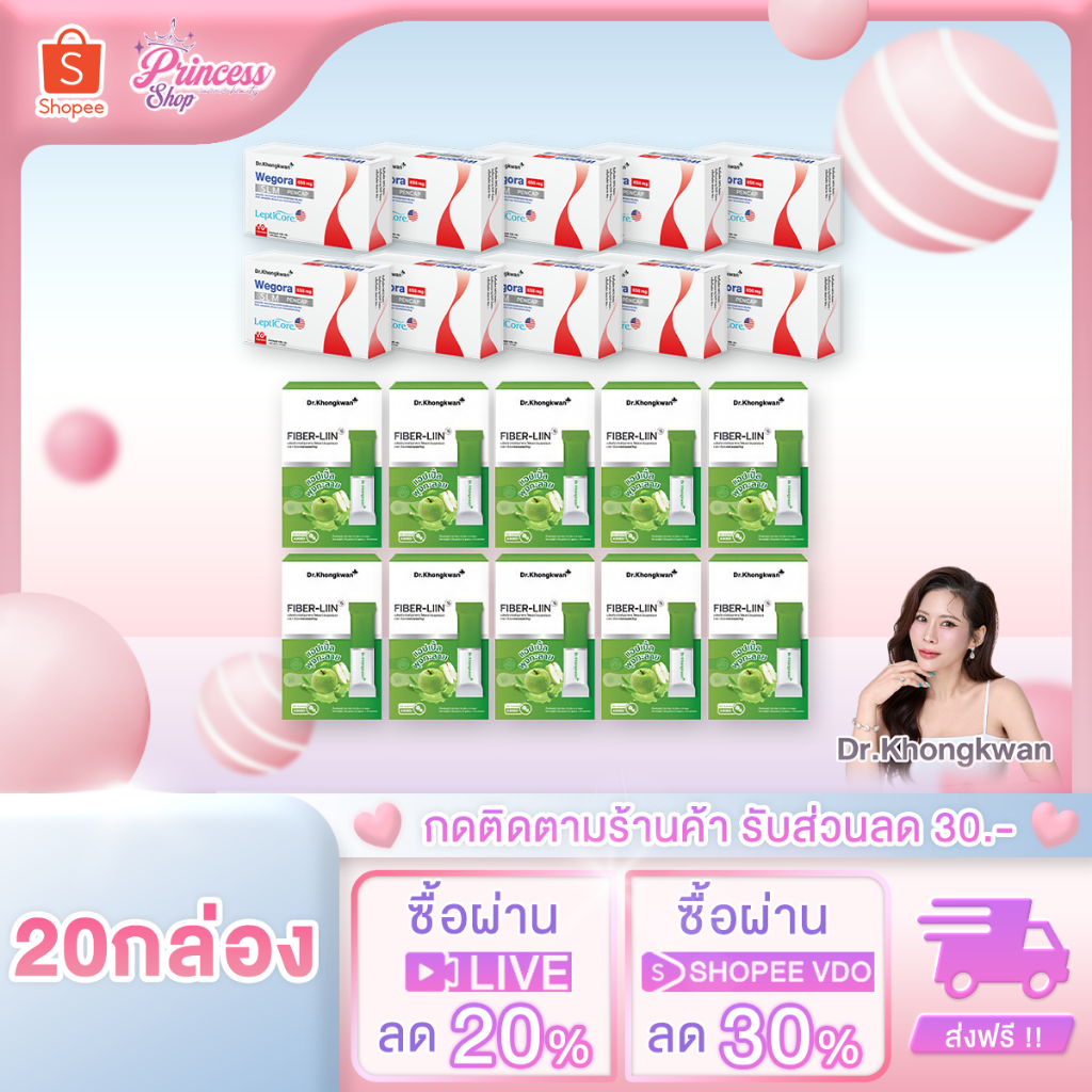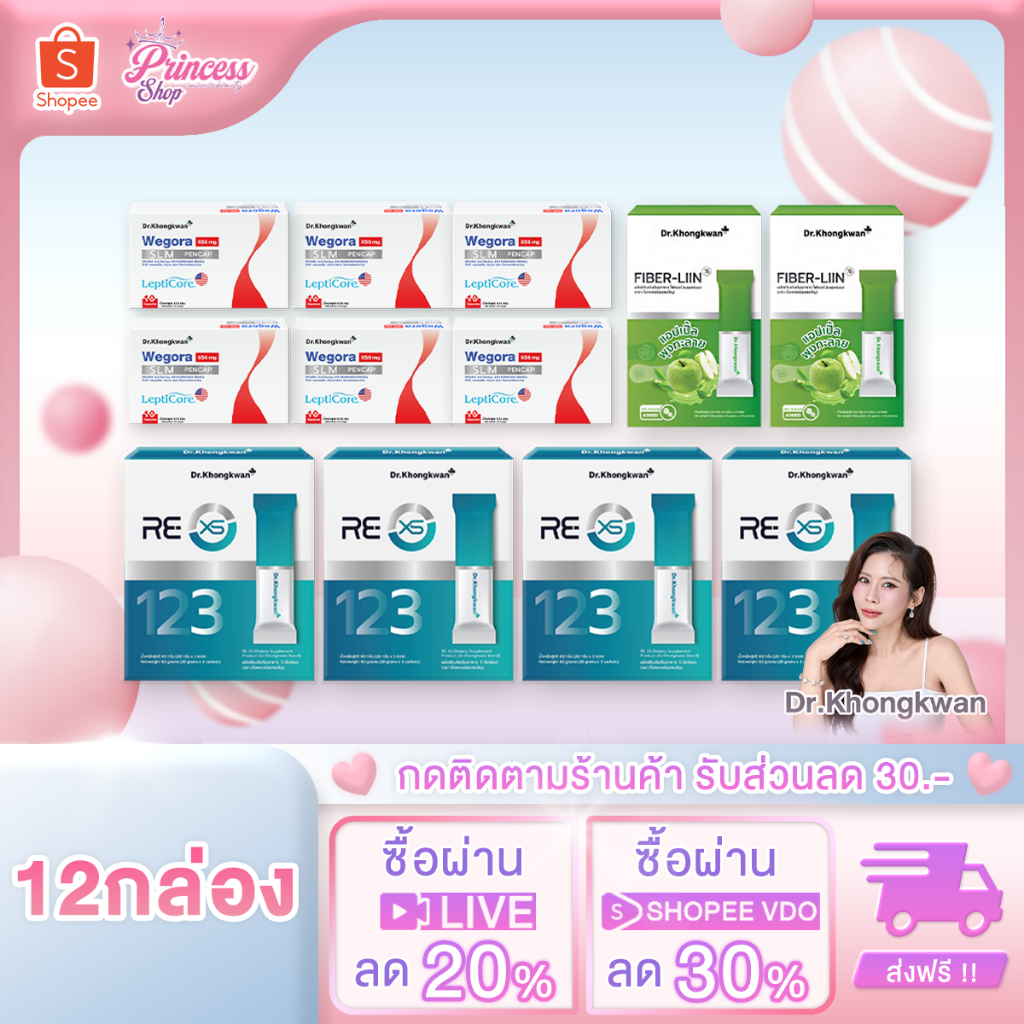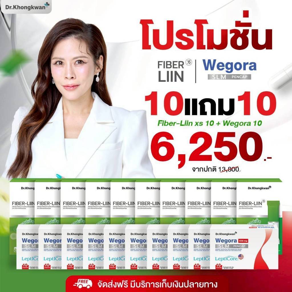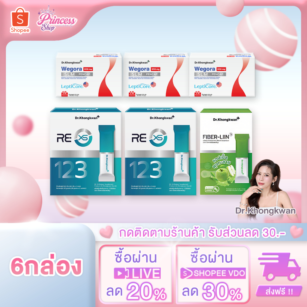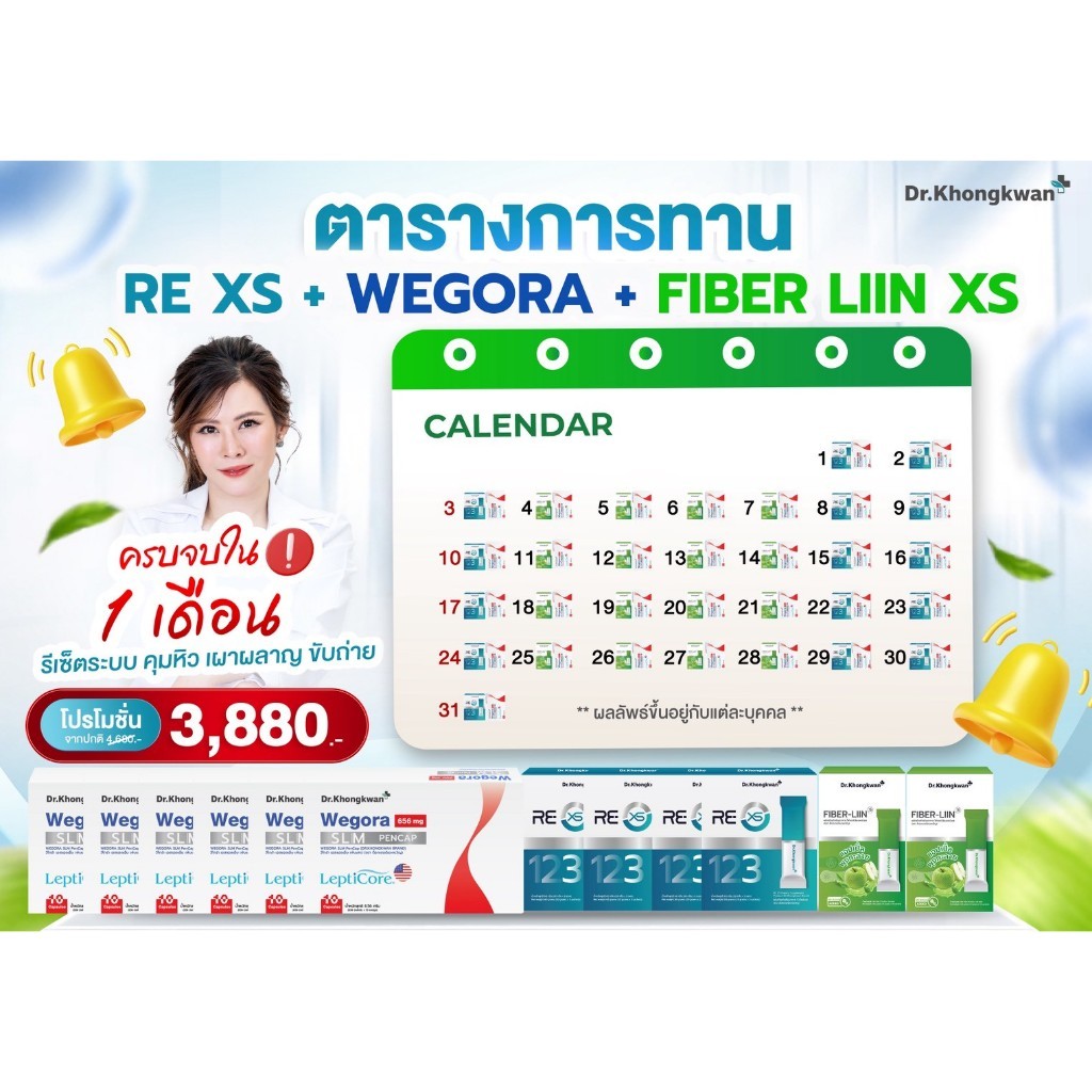 โปรโมชั่น Dr.Khongkwan Wegora วีโกร่า + RE XS รี เอ็กซ์เอส + Fiber-liin ไฟเบอร์ลีน ดร.ของขวัญ