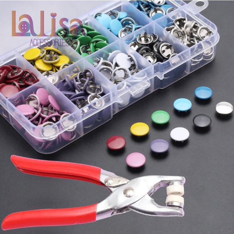 ชุดตอกพร้อมกระดุมโลหะ หลากสี สําหรับเสื้อผ้าเด็ก ชุดกระดุมแป๊ก DIY ขนาด 10 มิล (B-1-B,WW-00258)