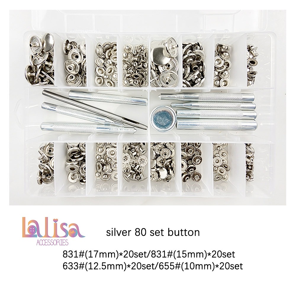 กระดุมสแน็ปพร้อมเครื่องมือในกล่อง กระดุมโลหะ หมุดตอกมือ Snap button 10/12.5/15/17mm with tool (SM-57)