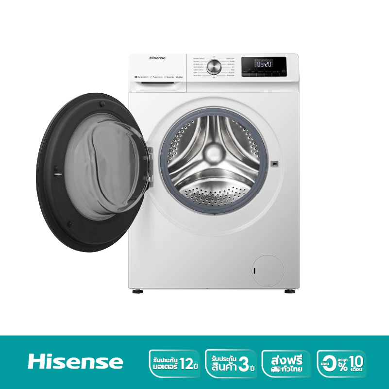 Hisense Wash & Dry เครื่องซักอบผ้าฝาหน้า Inverter ซัก 8.5Kg. อบ 6Kg. รุ่น WD3Q8543BW สีขาว ประหยัดไฟ ทำงานเงียบ