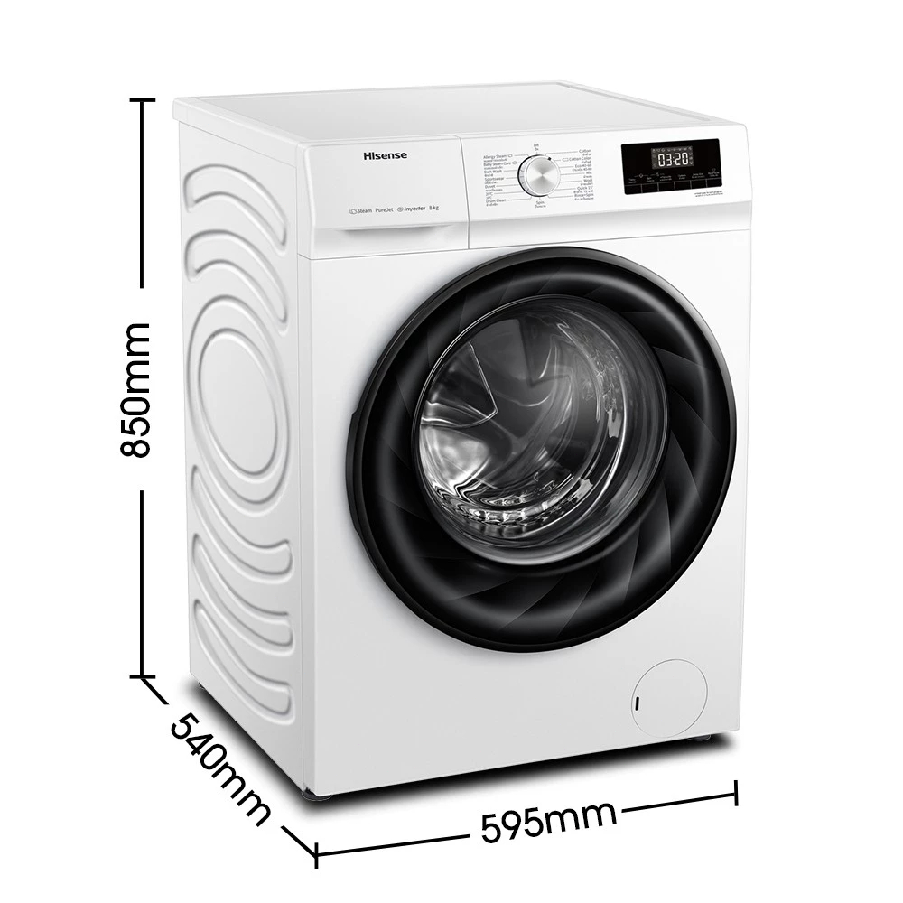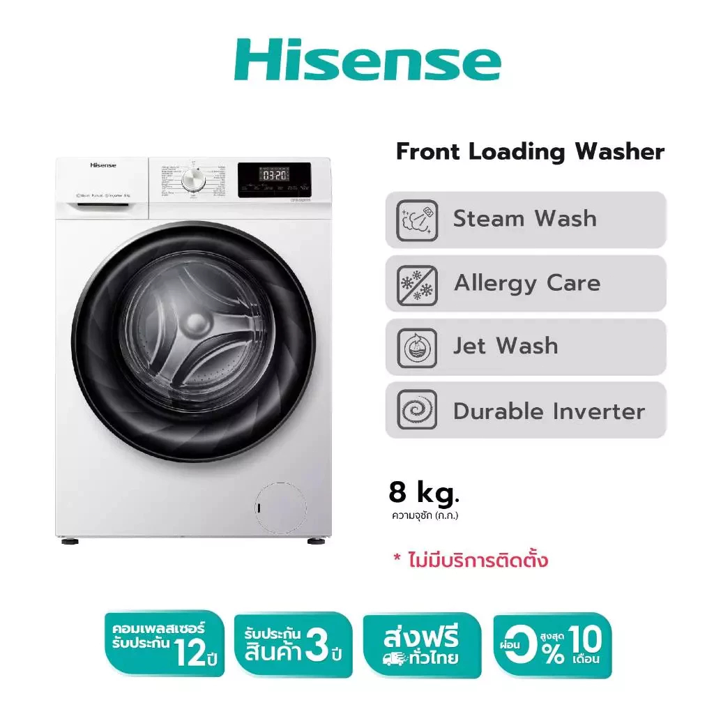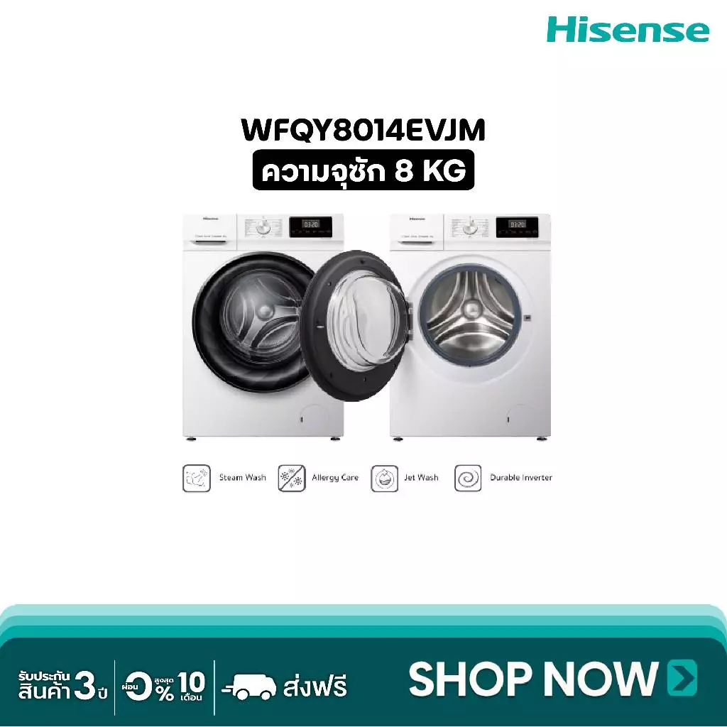 Hisense เครื่องซักผ้าฝาหน้า สีขาว รุ่น WFQY8014EVJM ความจุ 8 กก.