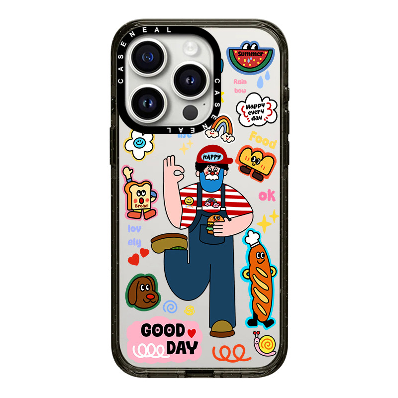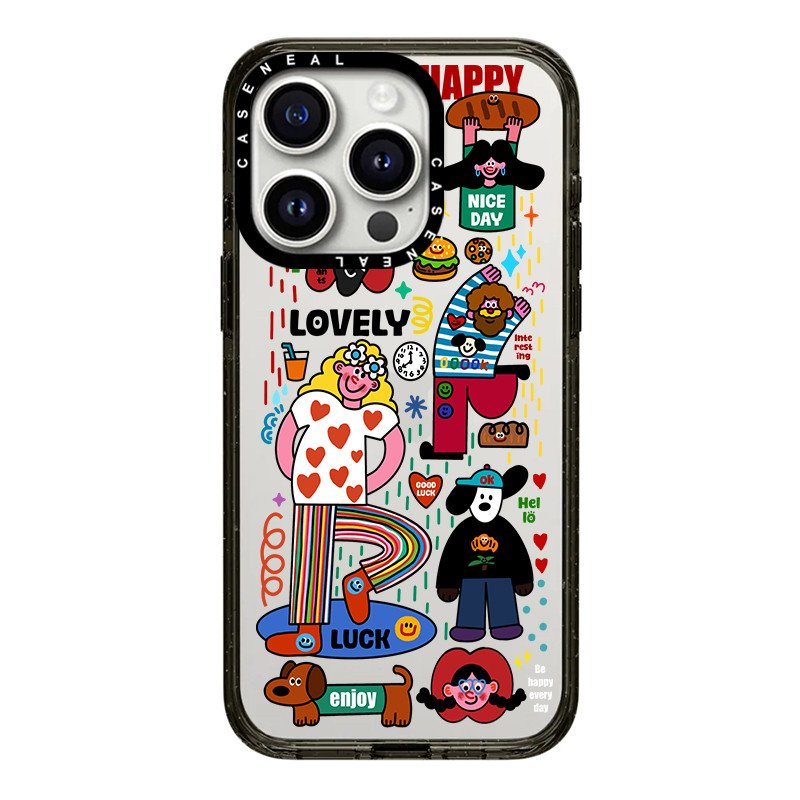 CASENEAL Graffiti Happy People อะคริลิคโปร่งใสเคสโทรศัพท์สําหรับ iPhone 16 Pro Max 15 Plus 14 ProMax 13 12Pro โทรศัพท์กันกระแทกขอบนุ่ม hard กรณีป้องกัน