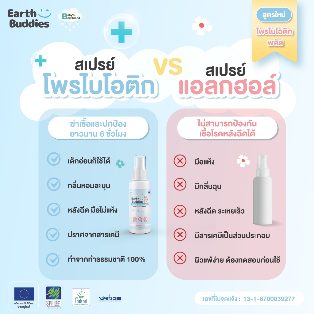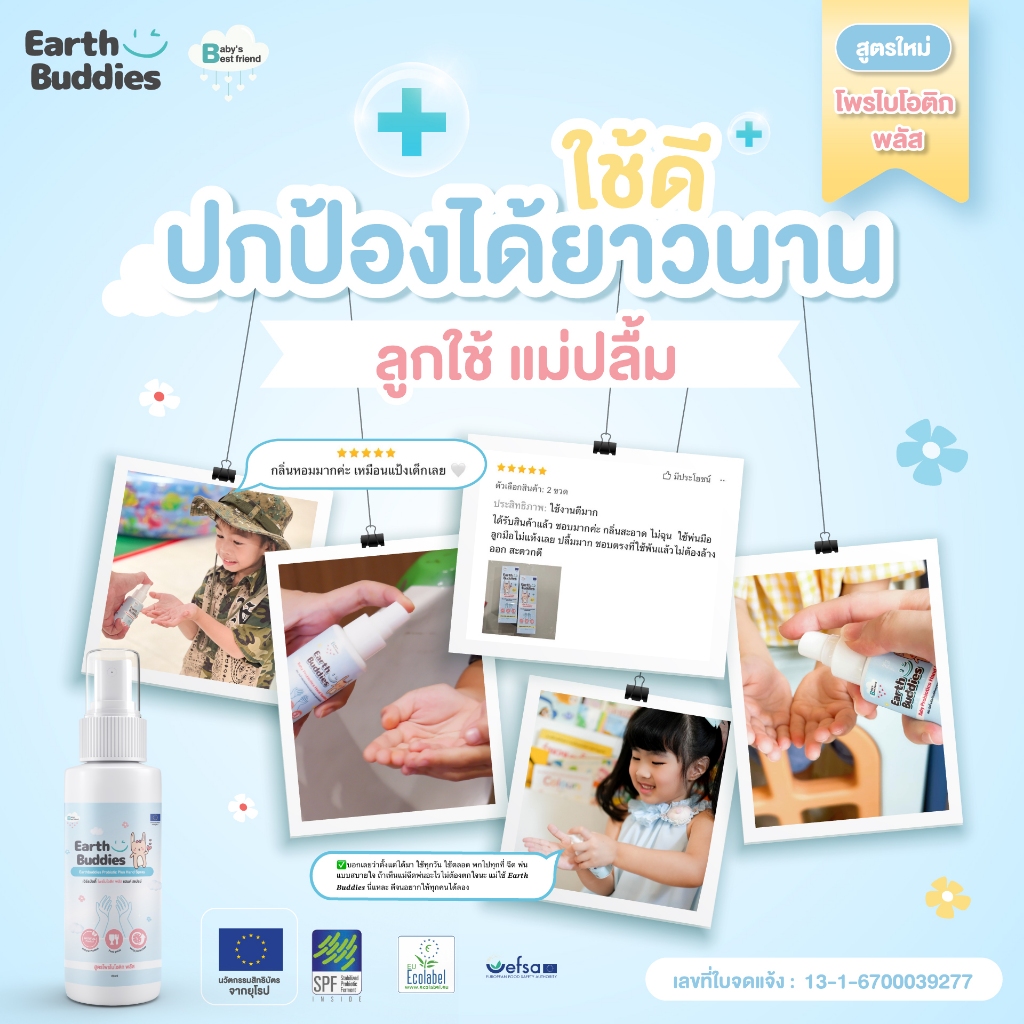 Earth Buddies สเปรย์ล้างมือ สูตรโพรไบโอติกพลัส