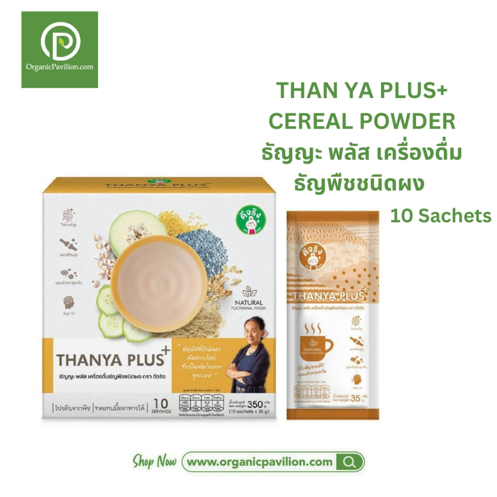 Dee Jing ธัญญะ พลัส เครื่องดื่มธัญพืชชนิดผง ตราดีจริง Thanya Plus + Cereal Powder (10 ซอง x 35g)