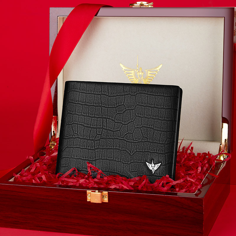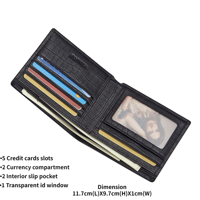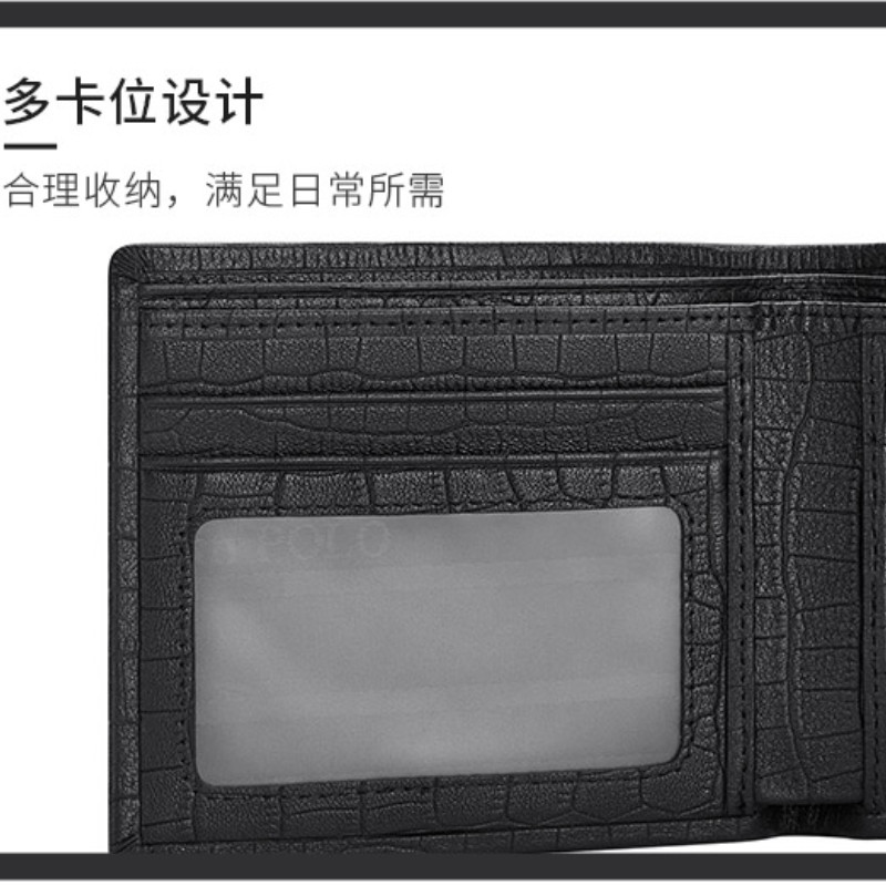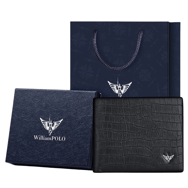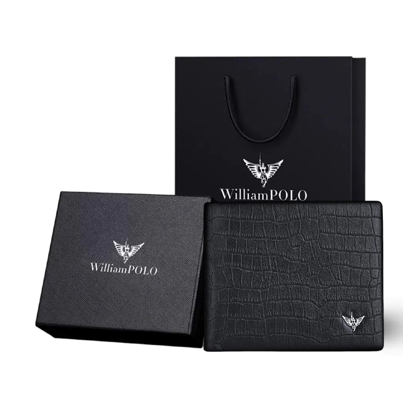 กระเป๋าสตางค์ผู้ชาย WilliamPOLO หนังแท้ กันสแกนข้อมูล ลายหนังจระเข้ แบบสั้น หรู ส่งฟรี Genuine Leather Men's Short Wallet RFID Blocking, Premium Crocodile Pattern Slim Wallet for Men - Gift Box