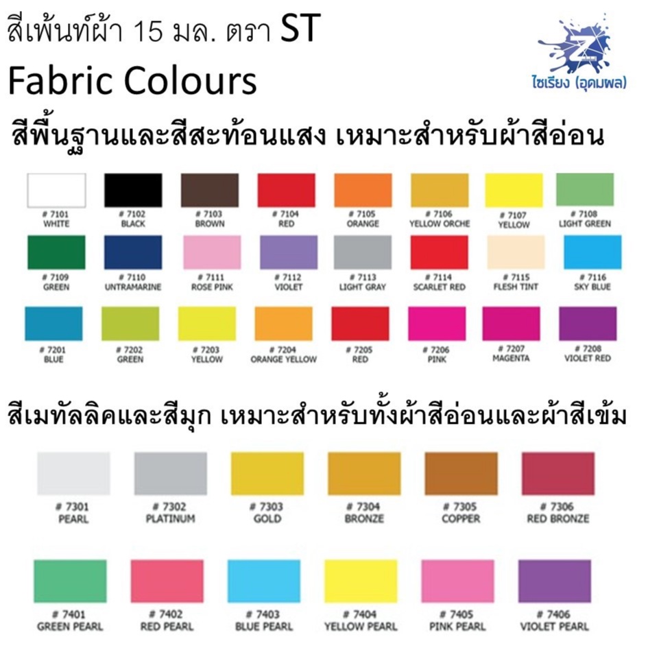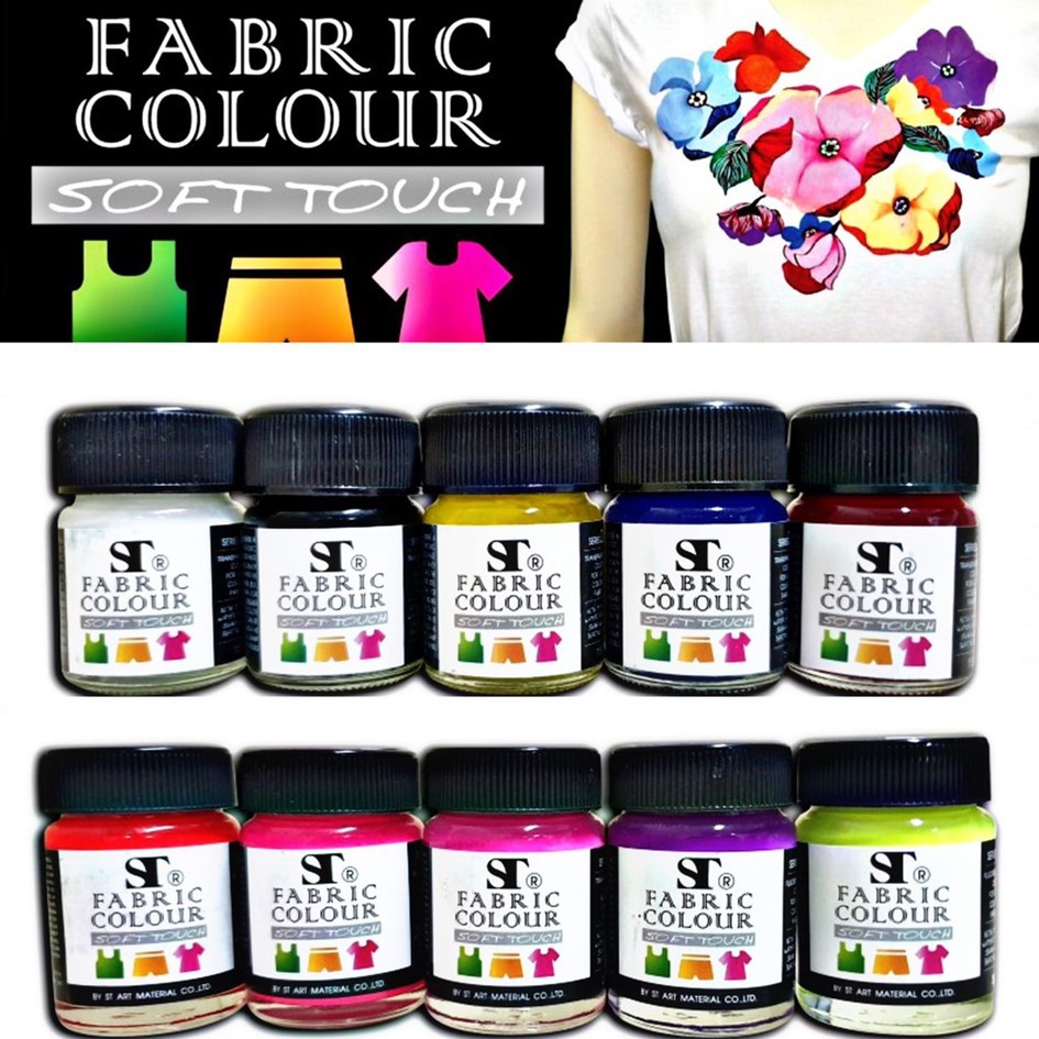 สีเพ้นท์ผ้า 15ml. ตรา ST Fabric Colour soft touch เนื้อเด่นชัด เม็ดสีเน้น สดสวย