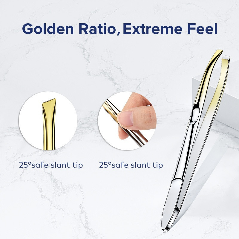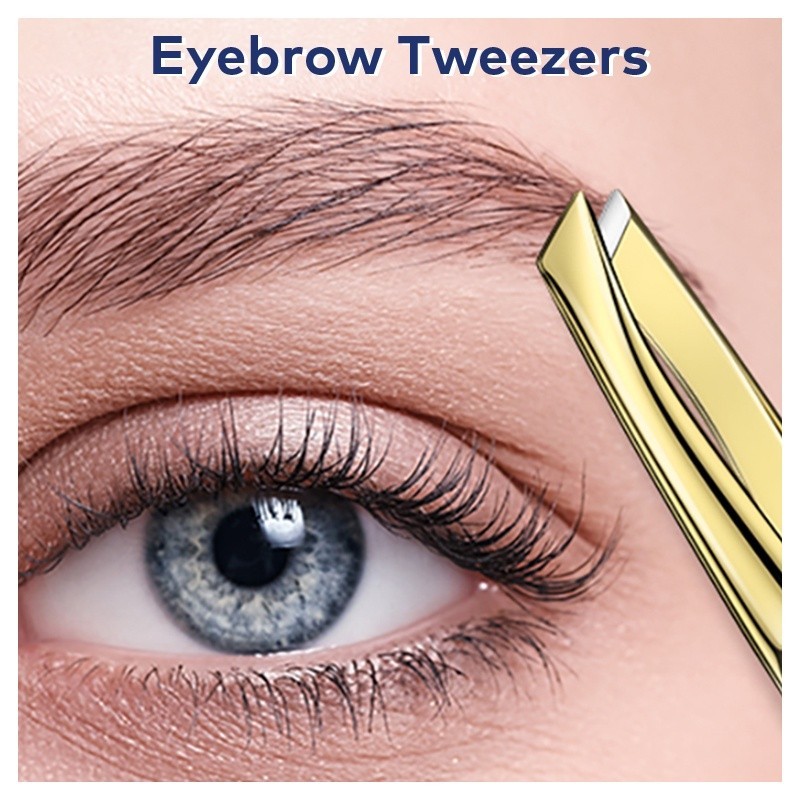 แหนบสเตนเลส สีทอง แหนบถอนขนคิ้ว กําจัดขนตา เครื่องมือแต่งหน้า