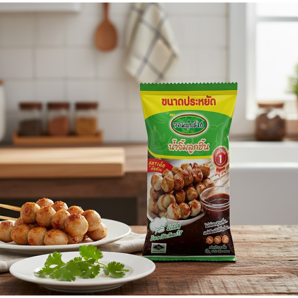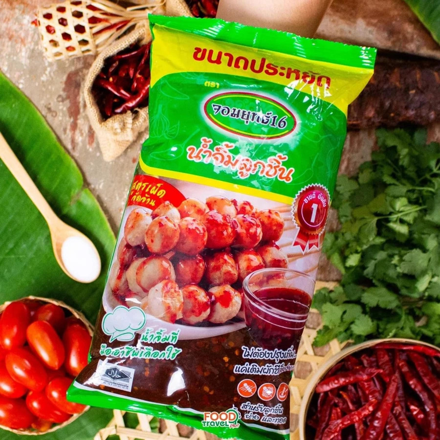 (ยกลัง 12 ถุง) น้ำจิ้มลูกชิ้น ตรา จอมยุทธ16 น้ำจิ้มจอมยุทธ์ [สูตรเผ็ดจัดจ้าน] ขนาด 1 กก.x12 ถุง