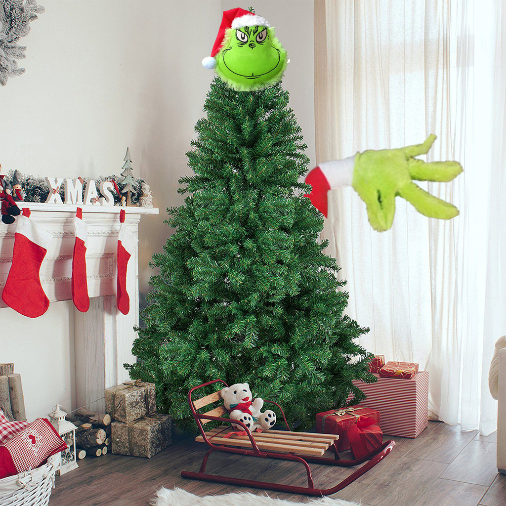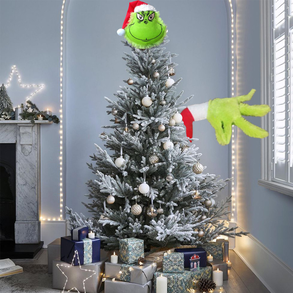 1 ชิ้น Grinch-Inspired ของเล่นตุ๊กตาสีเขียวขนตุ๊กตา Elf Head Whimsical และงานรื่นเริงตกแต่งสําหรับคริสต์มาส