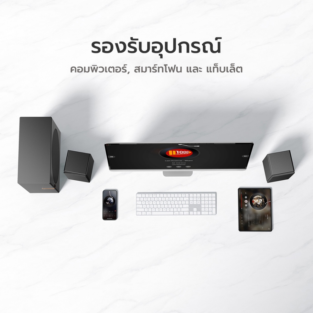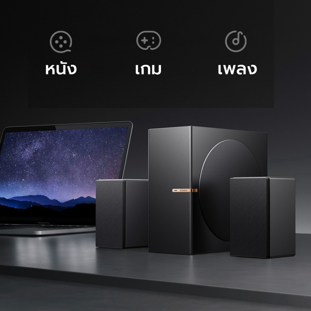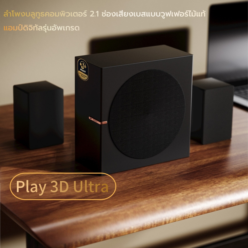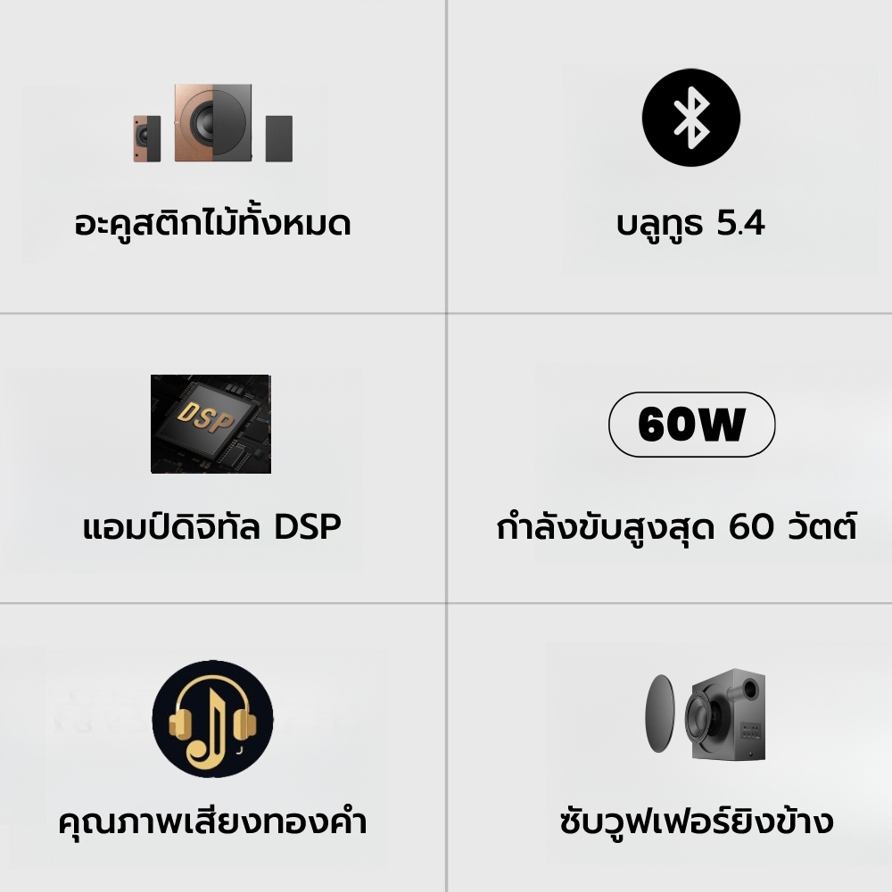 BINNIFA Play3D Ultra 2.1Ch ลำโพง บลูทูธ5.4 ขยายเสียงดิจิตอล 60 วัตต์ เสียงที่แท้จริง ลำโพงคอมพิวเตอร์ไร้สายอะคูสติกไม้ทั้งหมด คุณภาพเสียงสีทอง TV speaker 1 ปี น้ำหนัก 2.8 กก.