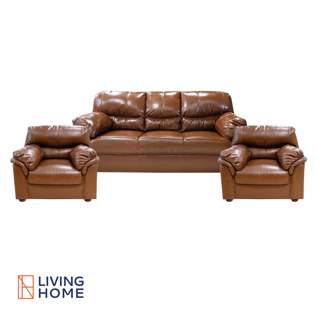 ชุดโซฟารับแขก 3+1+1 หนัง PU สีน้ำตาล รุ่น บาร์เซโลน่า (Barcelona) | Livinghome
