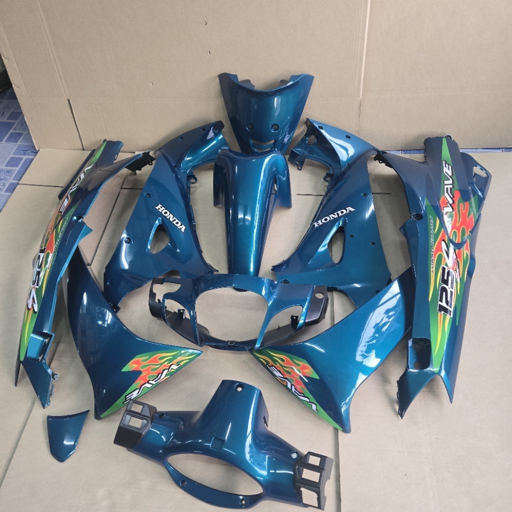 ชุดสี wave125s เวฟ125s สีเขียวหัวเป็ด สีเขียว127m กุญแจกลม กาบรถ เฟรมรถ เวฟ ยกชุด11ชิ้น พร้อมติดลายแต่ง ลายไฟ สีเขียว