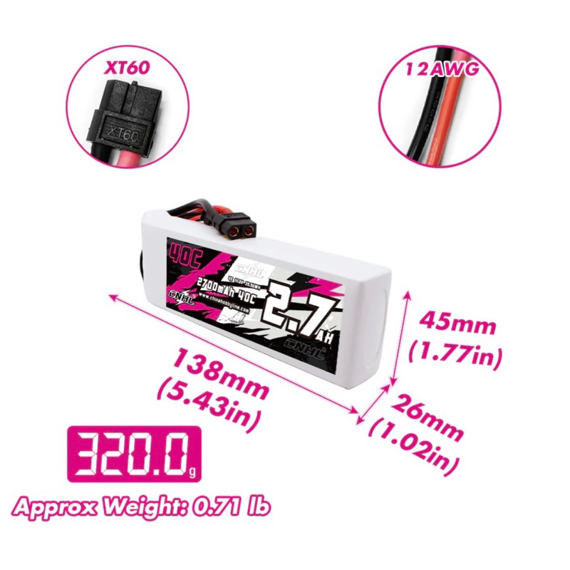 ⭐️CNHL Lipo 4S 14.8V 2700mAh 40C แบตคุณภาพความจุ C เต็ม (XT60)**(กรุณาเช็คขนาดก่อนกดสั่ง)**⭐️