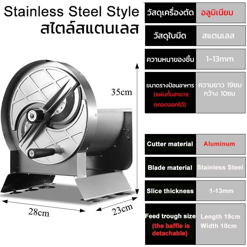 สแตนเลส Manual slicer เครื่องสไลด์ ปรับความหนาได้ 0-13 มม. เครื่องสไลด์ผัก เครื่องห ั่นตะไคร้