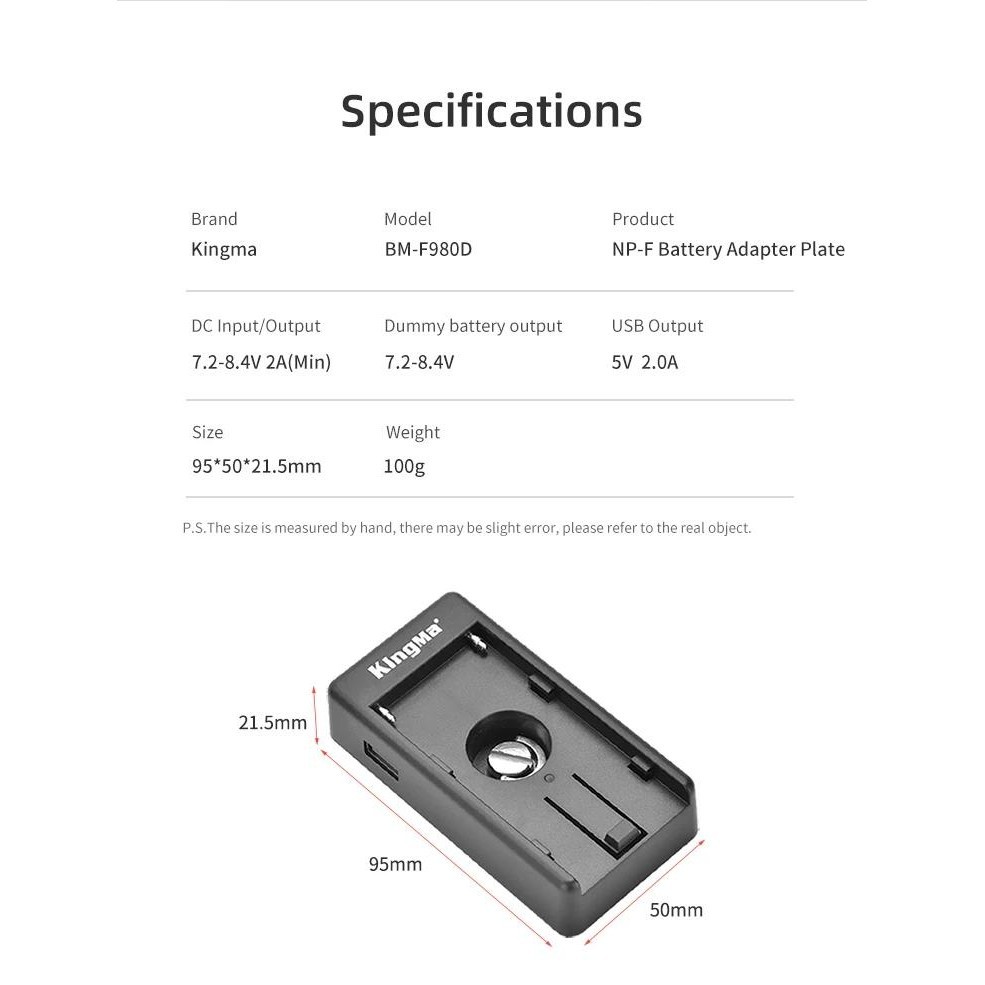 Kingma NP-FW50 Dummy แบตเตอรี่ NP-F แบตเตอรี่อะแดปเตอร์แผ่นสําหรับ Sony ZV-E10 A7M2 A7II A7S A7R A7RII A6000 A6300 A6400 A6500