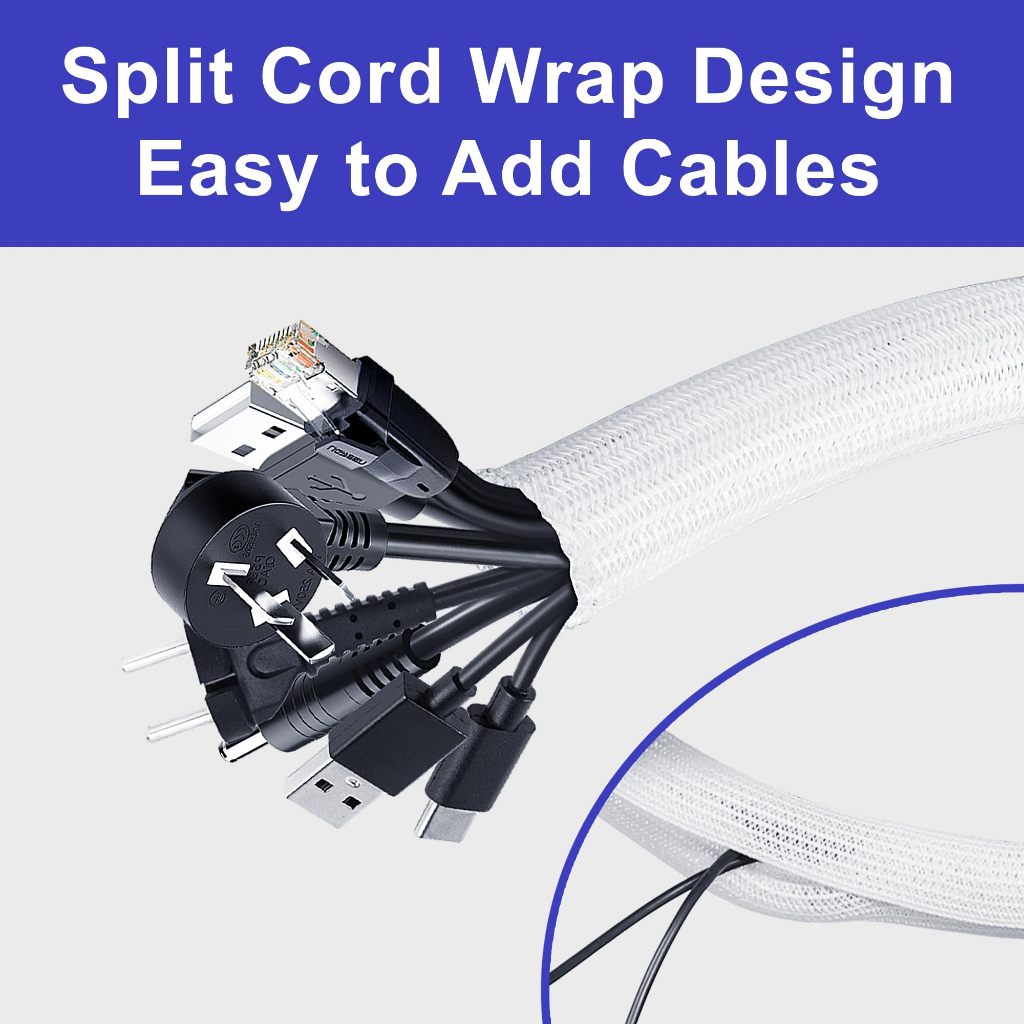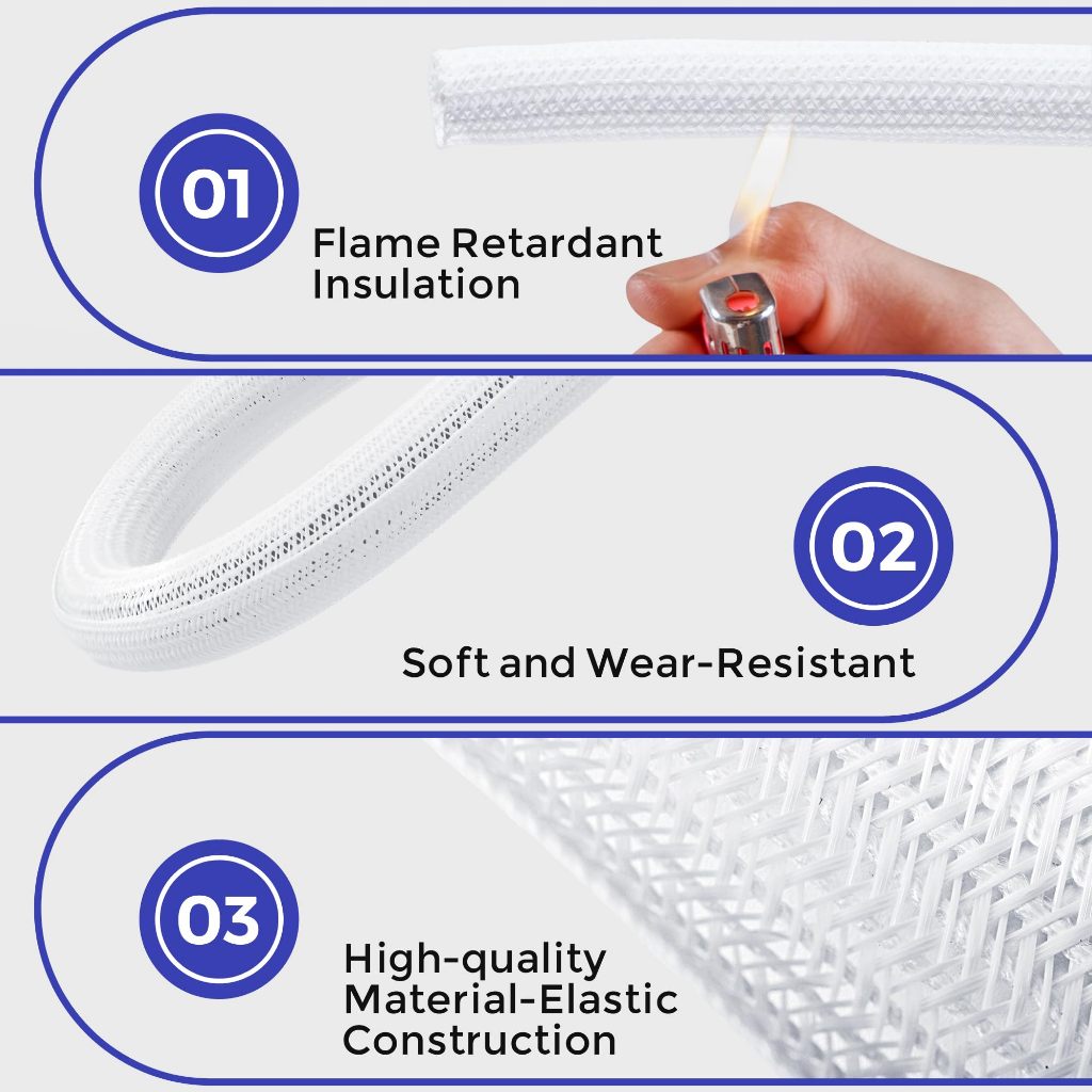 【ซีรีส์สีขาว】ปลอกจัดการสายไฟ, ที่ป้องกันสายไฟจากสัตว์เลี้ยง, ตัวจัดระเบียบสายไฟสำหรับบ้านและสำนักงาน