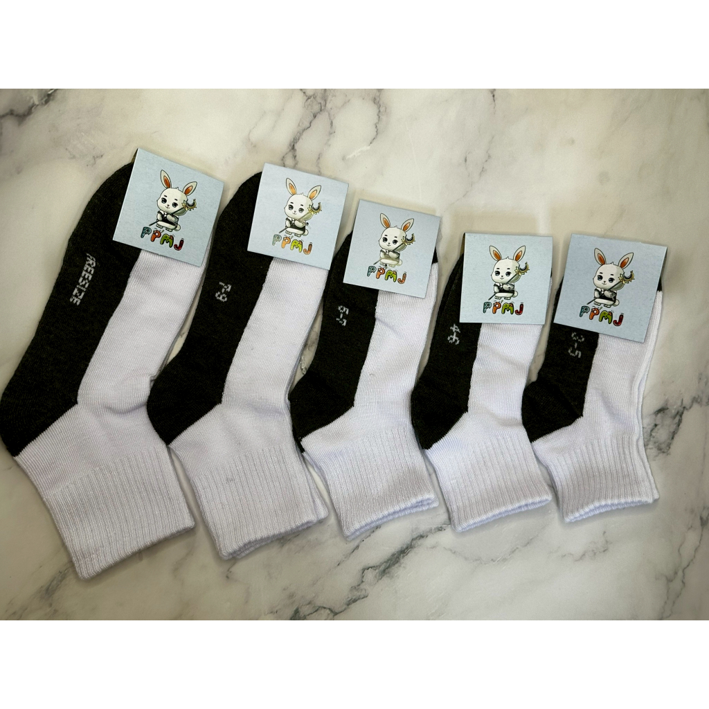 {แยกคู่} ถุงเท้านักเรียน ถุงเท้าลูกเสือ สีขาวพื้นเทามาตรฐาน สีน้ำตาล พร้อมส่ง ผลิตในประเทศ คุณภาพดี ราคาโรงงาน PPMJ