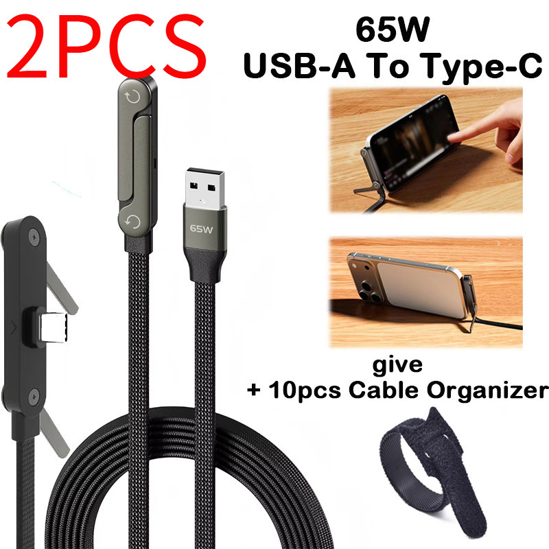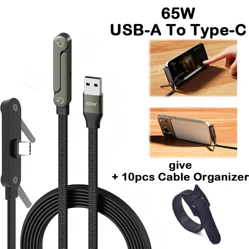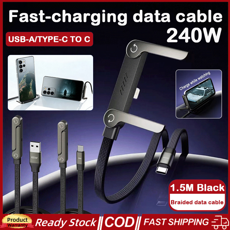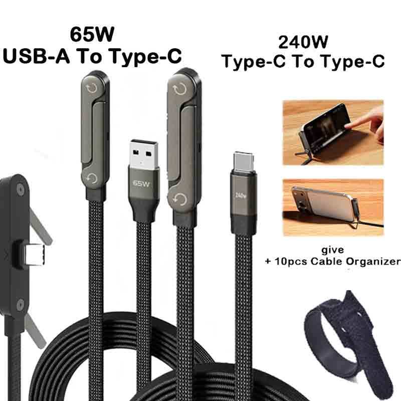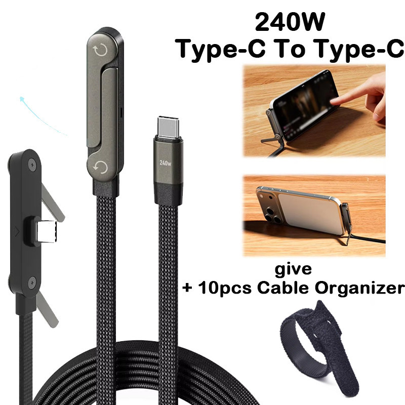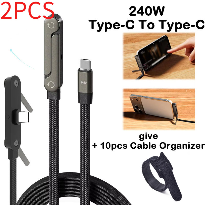 2-in-1 240w พับ Fast Charging Data CABLE โทรศัพท์แท็บเล็ตขาตั้ง Elbowed สายชาร์จ Type-C /USB-A ถึง Type-C สําหรับโทรศัพท์ Macbook Pro Ipad
