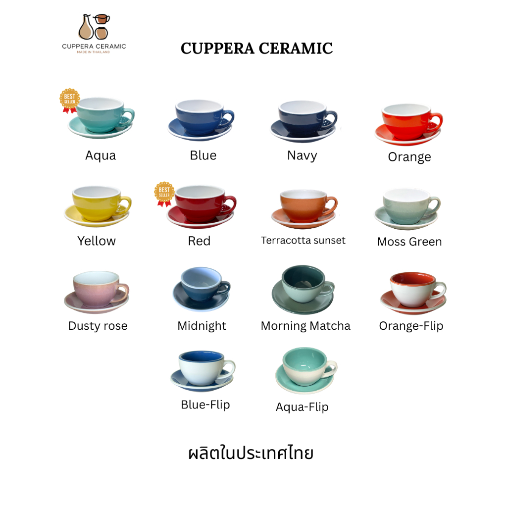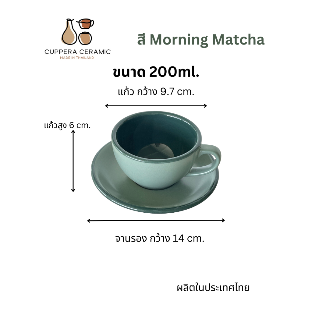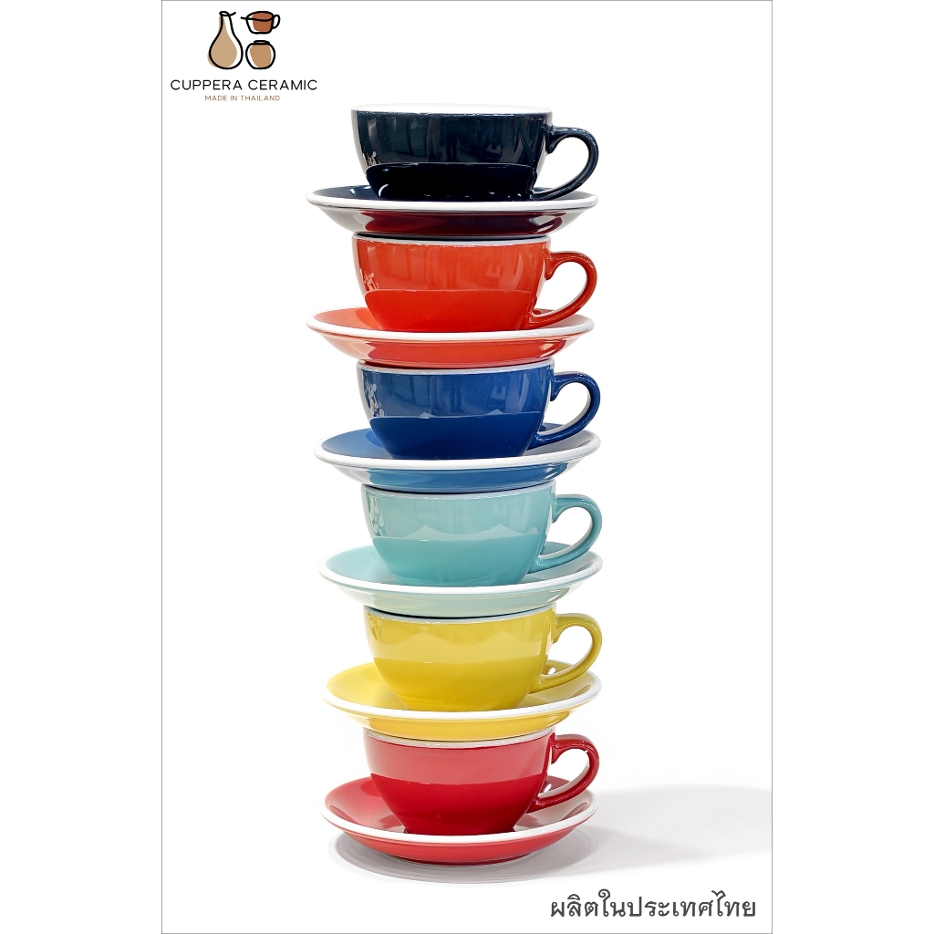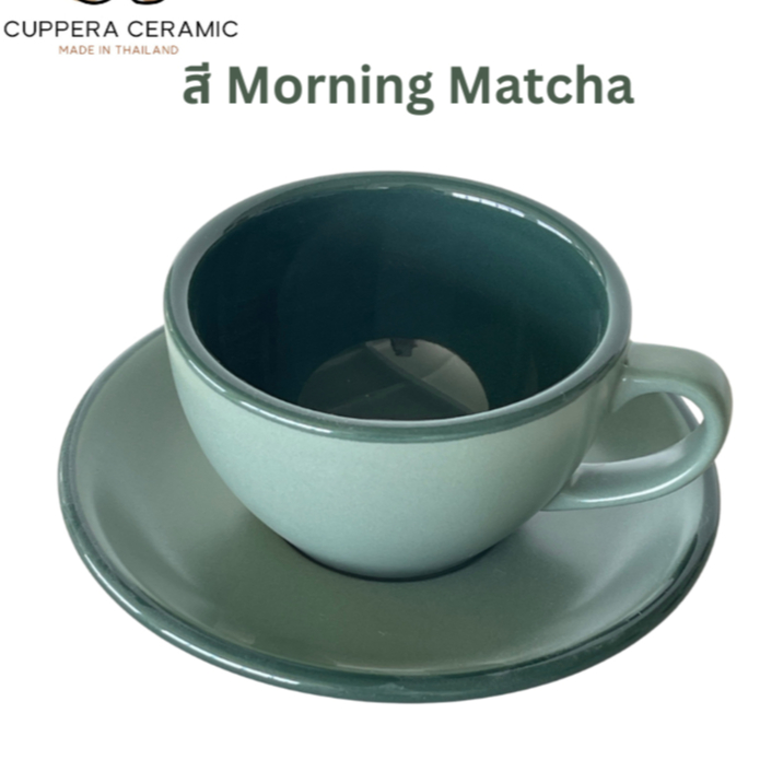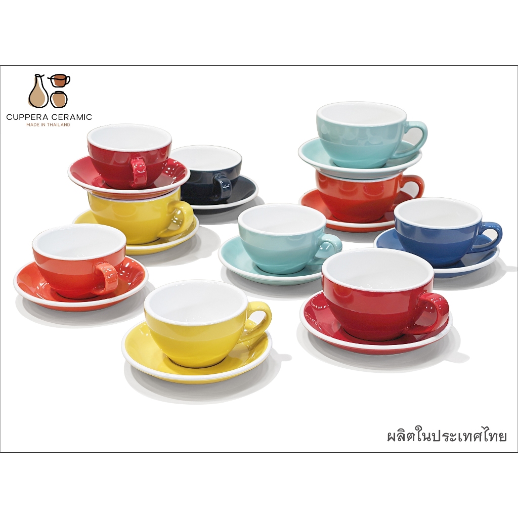 CUPPERA ชุดถ้วยกาแฟ แก้วกาแฟเซรามิค พร้อมจานรอง ขอบหนา ผลิตในประเทศไทย ชุดแก้วกาแฟ ร้านกาแฟ ร้านอาหาร