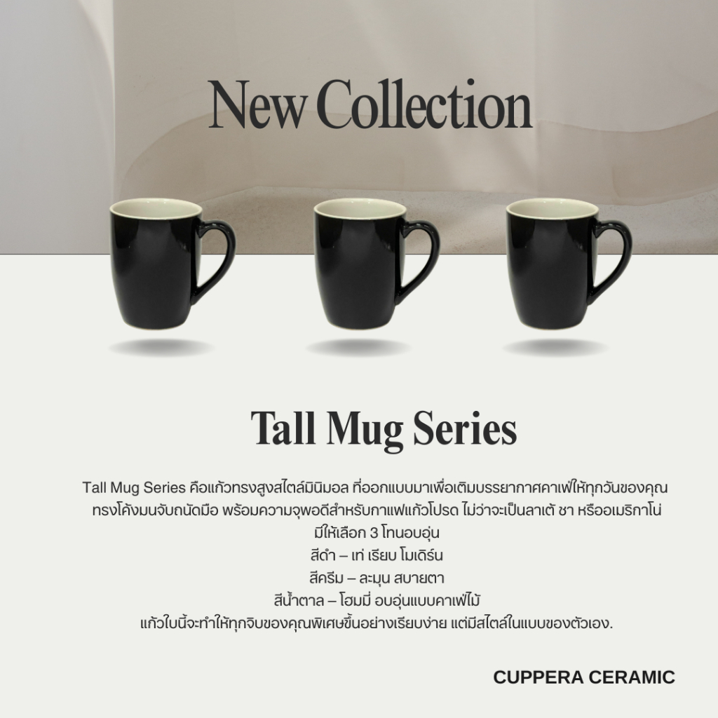 Cuppera แก้วเซรามิก Tall mug series ขนาด 300ml. สีทูโทน ด้านในสีขาว ทนความร้อน นำเข้าไมโครเวฟได้