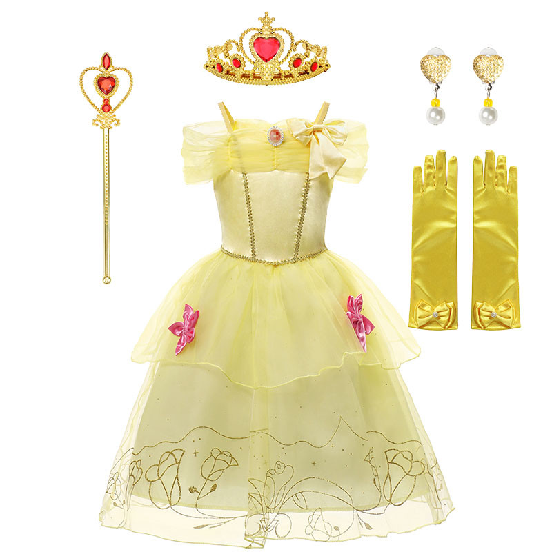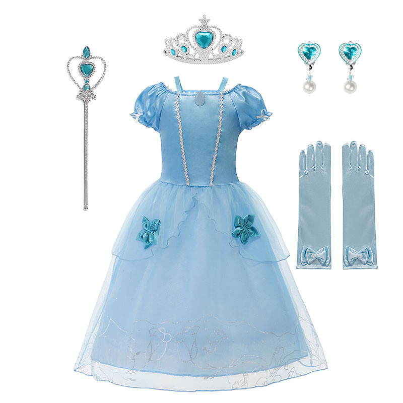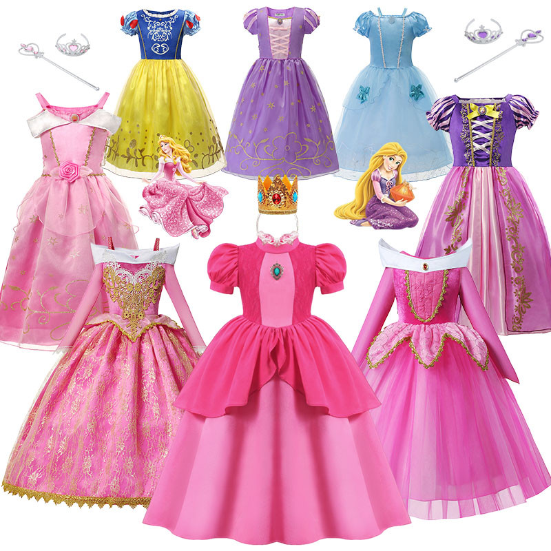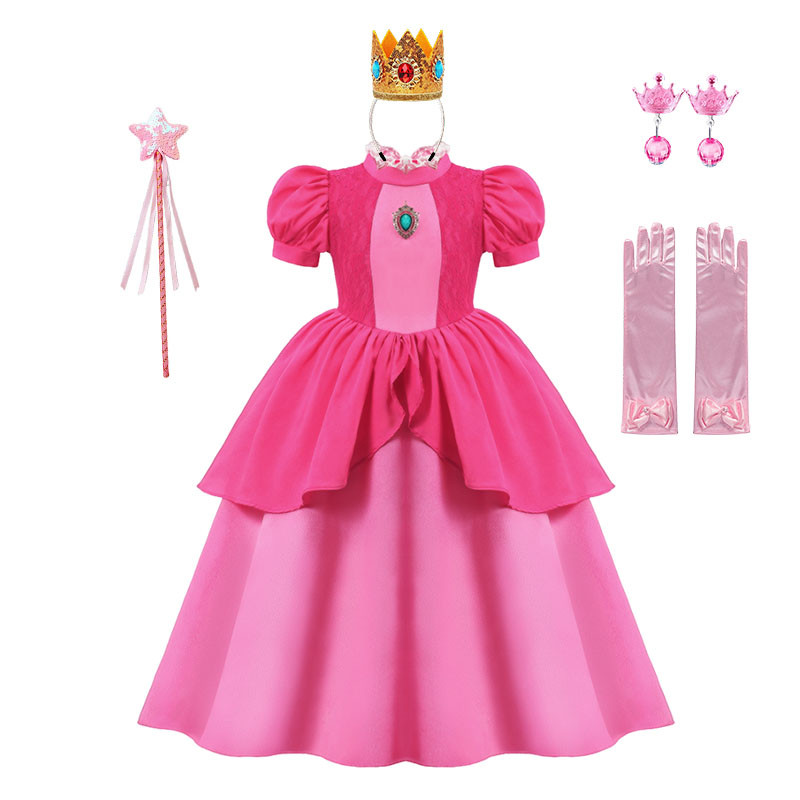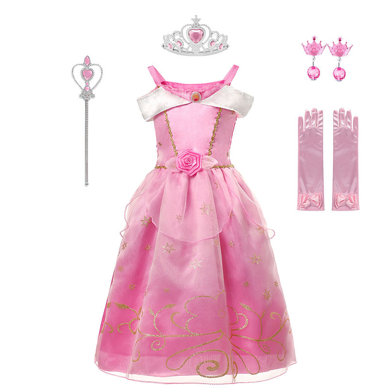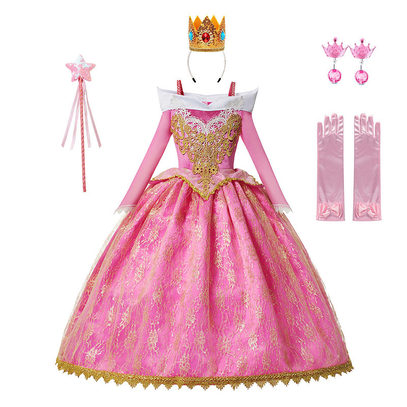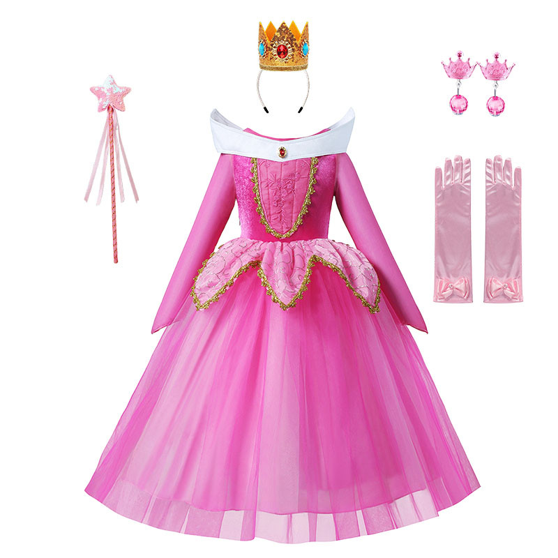สาวงานเลี้ยงวันเกิดชุดเจ้าหญิงออโรร่าพีชคอสเพลย์เครื่องแต่งกายมงกุฎและถุงมือชุดเด็กเทศกาลเสื้อผ้าฮาโลวีน