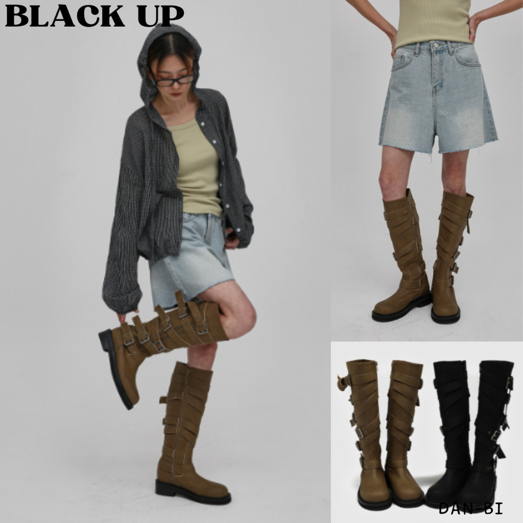♞,♘[BLACK Up] Mochel Biker Buckle Long Boots_2color / สินค้า KR แท้ 100% / จัดส่งรวดเร็วจาก KR! XXG