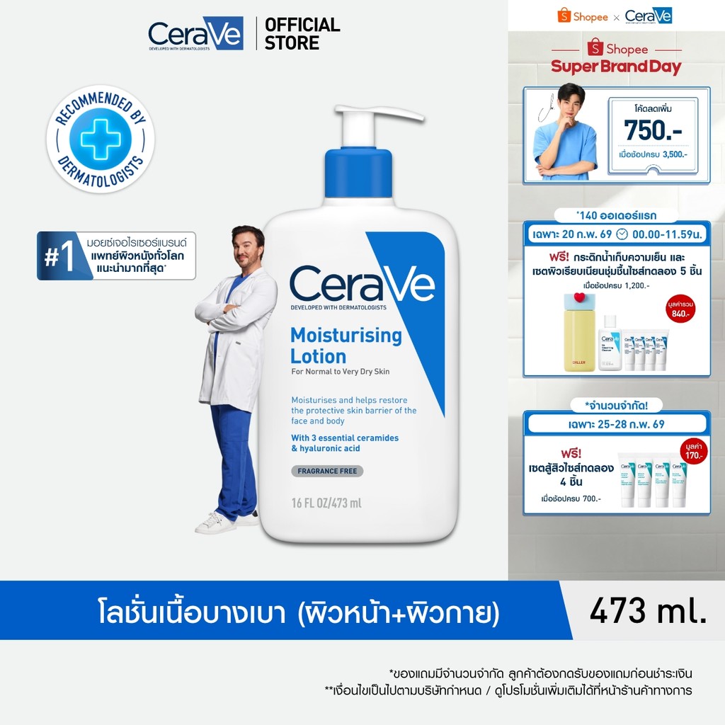 เซราวี CERAVE Moisturising Lotion มอยเจอร์ไรซิ่ง โลชั่นบำรุงผิวให้ความชุ่มชื้นตลอดวัน เนื้อสัมผัสบางเบา 473ml
