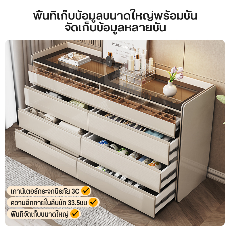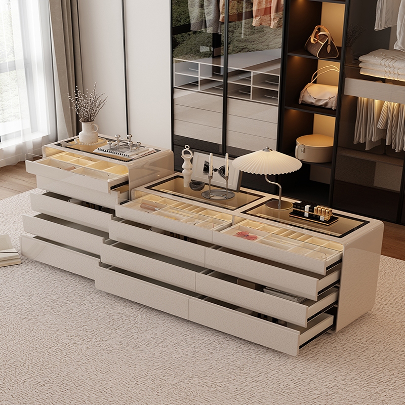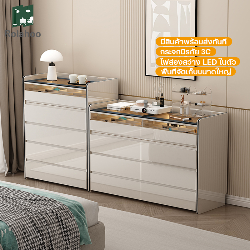 ตู้ลิ้นชักหรูหราน้ำหนักเบา ตู้เก็บของห้องนอน ความจุขนาดใหญ่ ตู้เครื่องสำอาง โต๊ะข้างเตียง ตู้ใส่เครื่องประดับ A