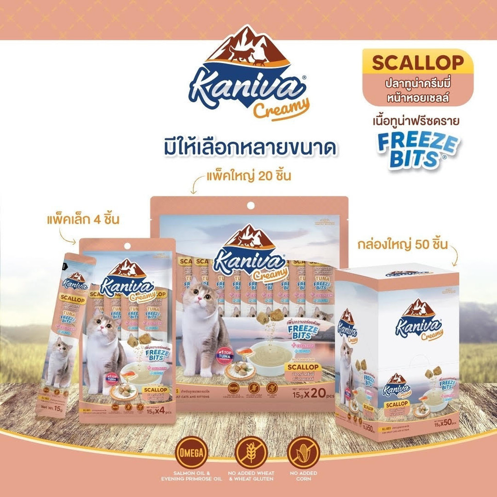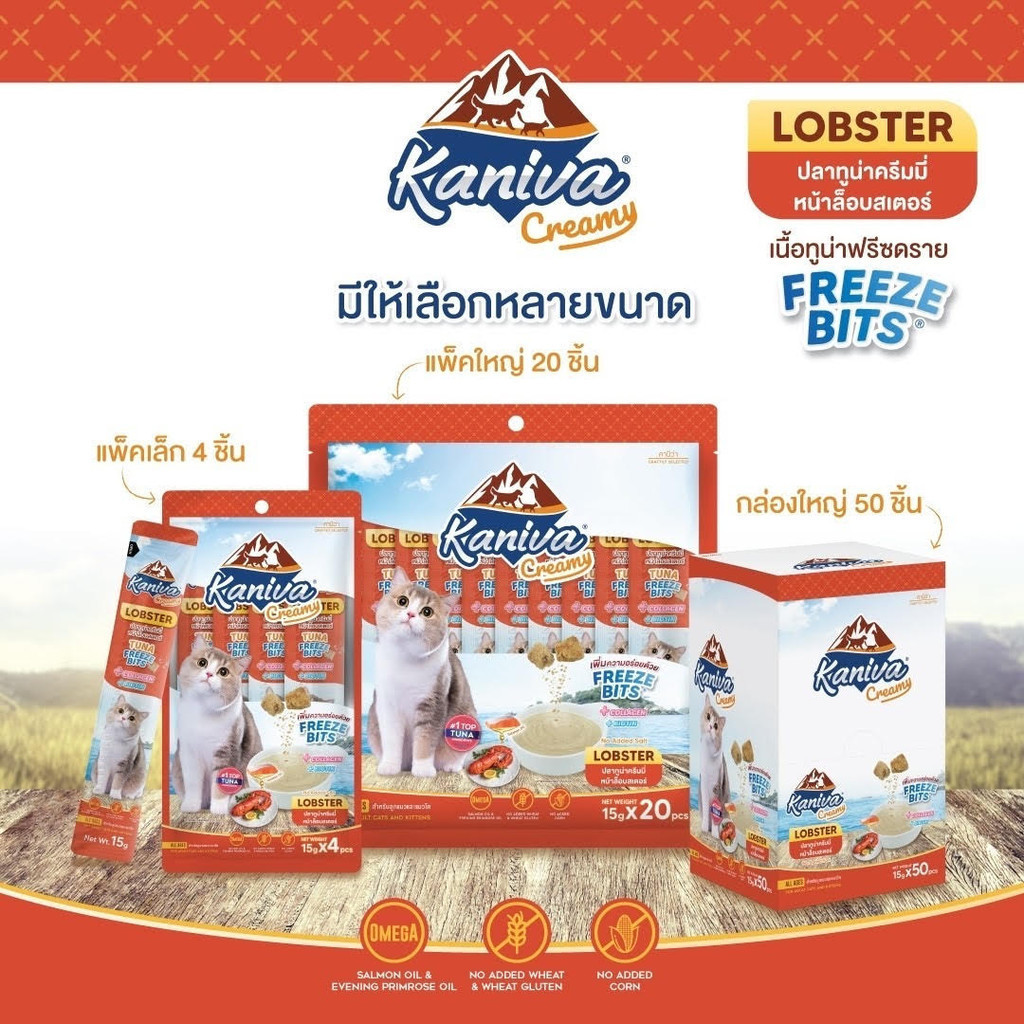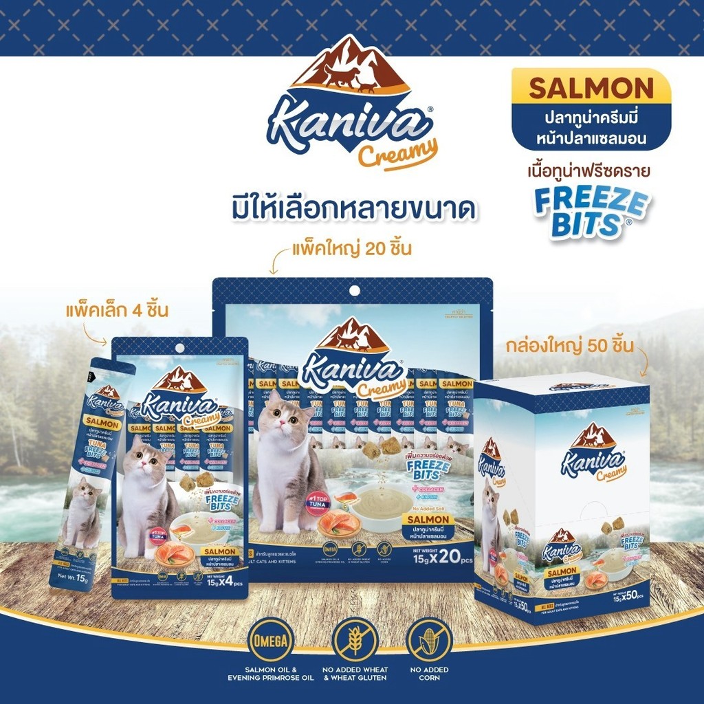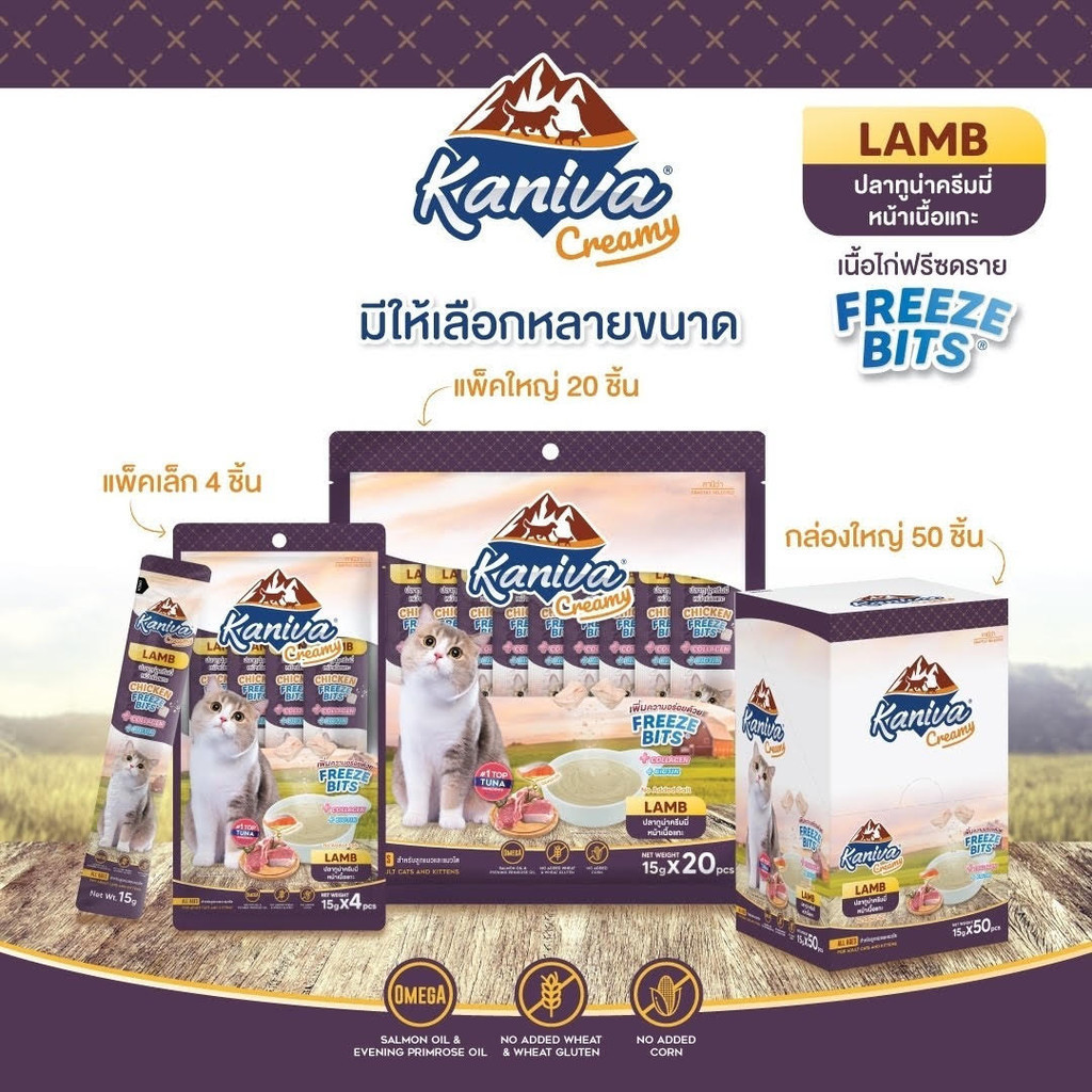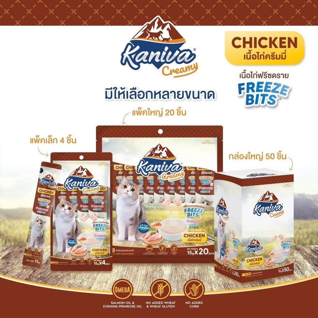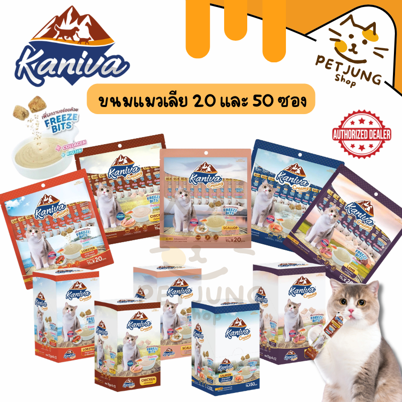 [20/50 ซอง] Kaniva ขนมแมวเลีย Creamy Treat คานิว่า แพ็คคุ้ม เพิ่มความอร่อยด้วยฟรีซดราย ขนาดซองละ 15 กรัม