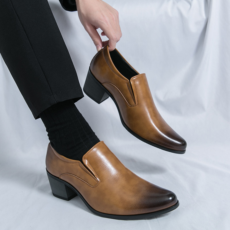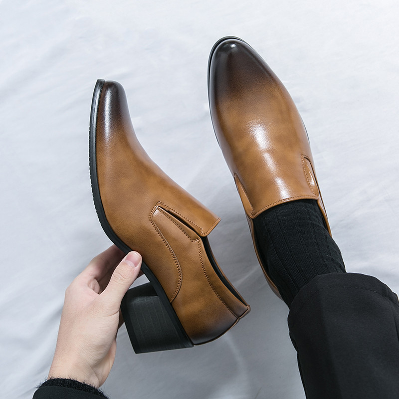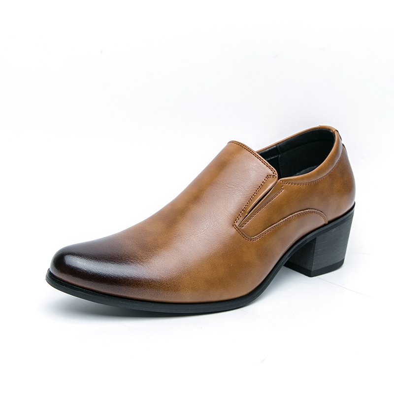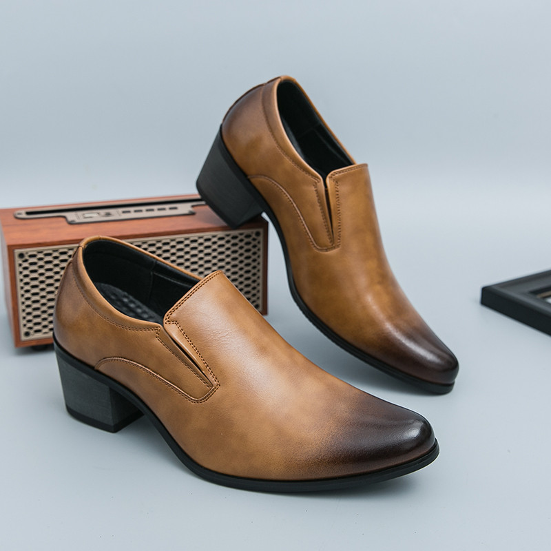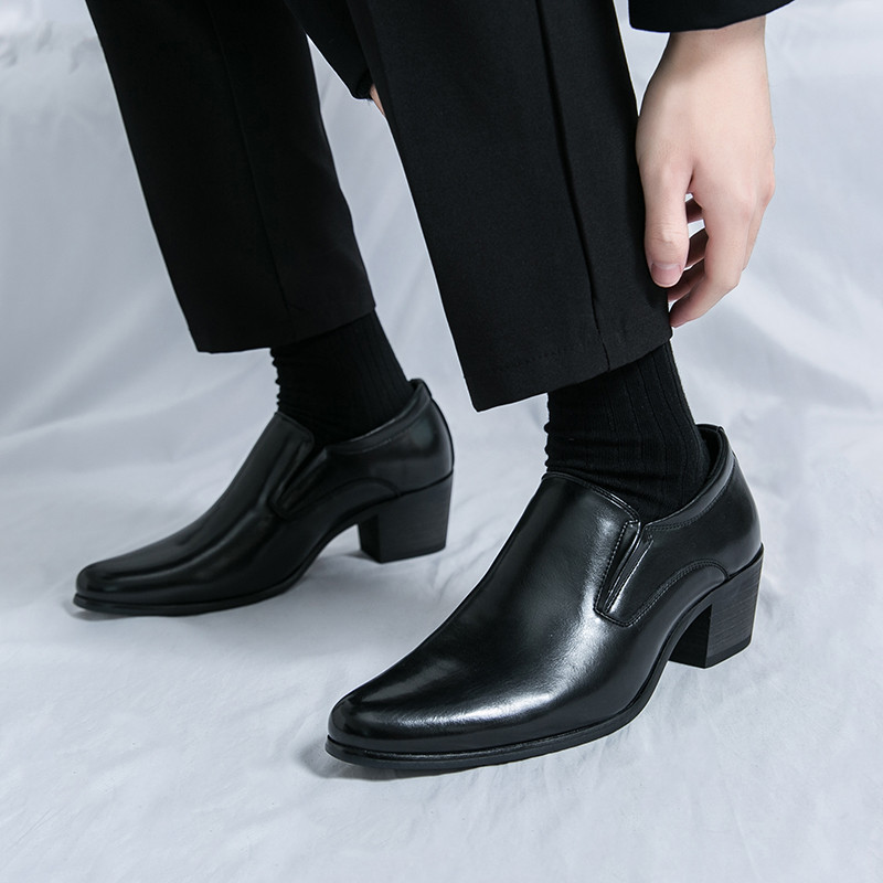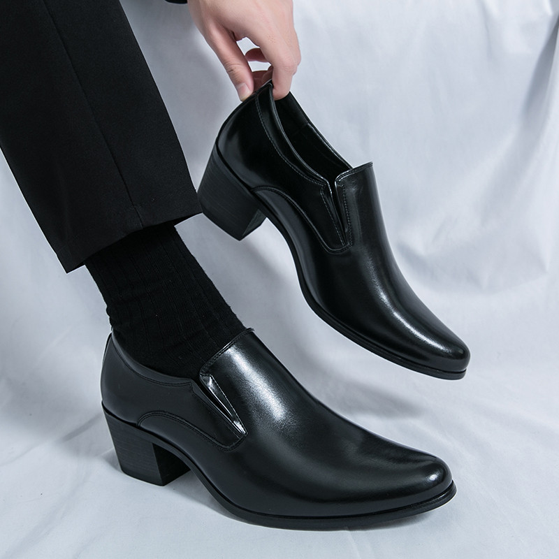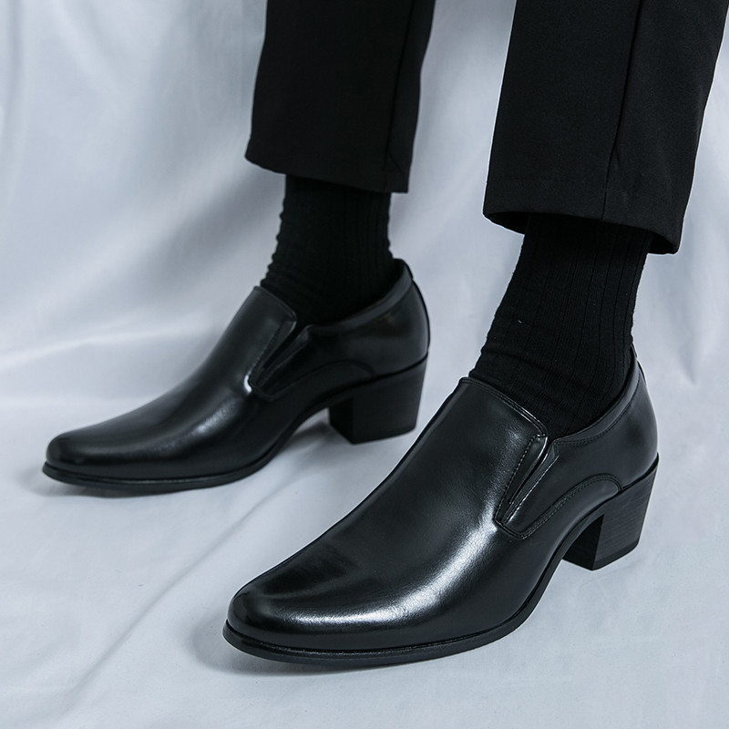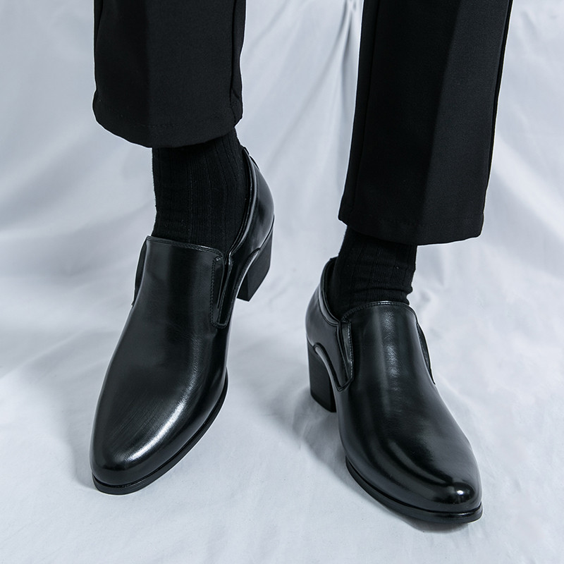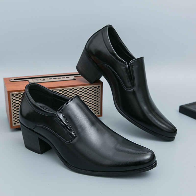 สูง ส้นธุรกิจรองเท้าหนังงานแต่งงานลื่นบนอย่างเป็นทางการอาชีพรองเท้าทํางาน38-46เพิ่ม6ซม.รองเท้าผู้ชาย