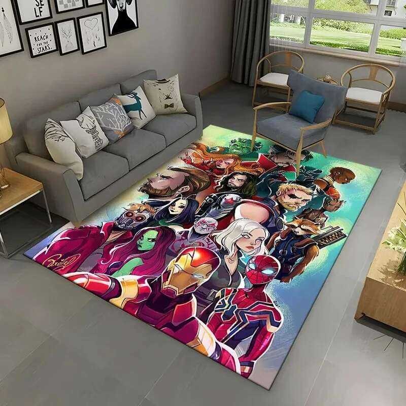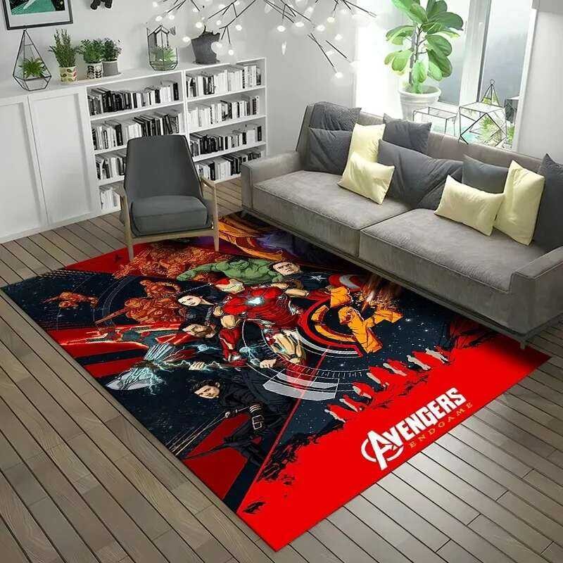 MINISO แผ่นพรมการ์ตูนอเวนเจอร์ส สำหรับห้องนั่งเล่น ล้างทำความสะอาดได้ สำหรับห้องนอน ห้องน้ำ พรมกันลื