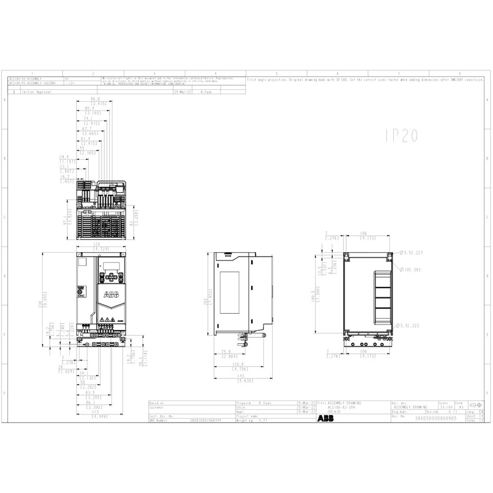 ABB Inverter อินเวอร์เตอร์ ACS180-04S-12A6-4 7.5HP 5.5kW Input 400V 3-Phase Output 400V 3-Phase